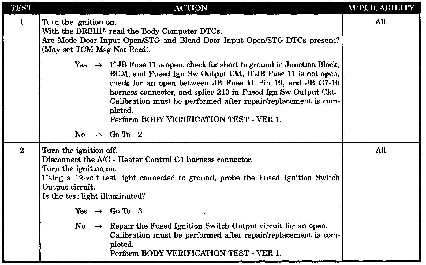 A/C MODE DOOR INPUT OPEN/SHORT TO GROUND