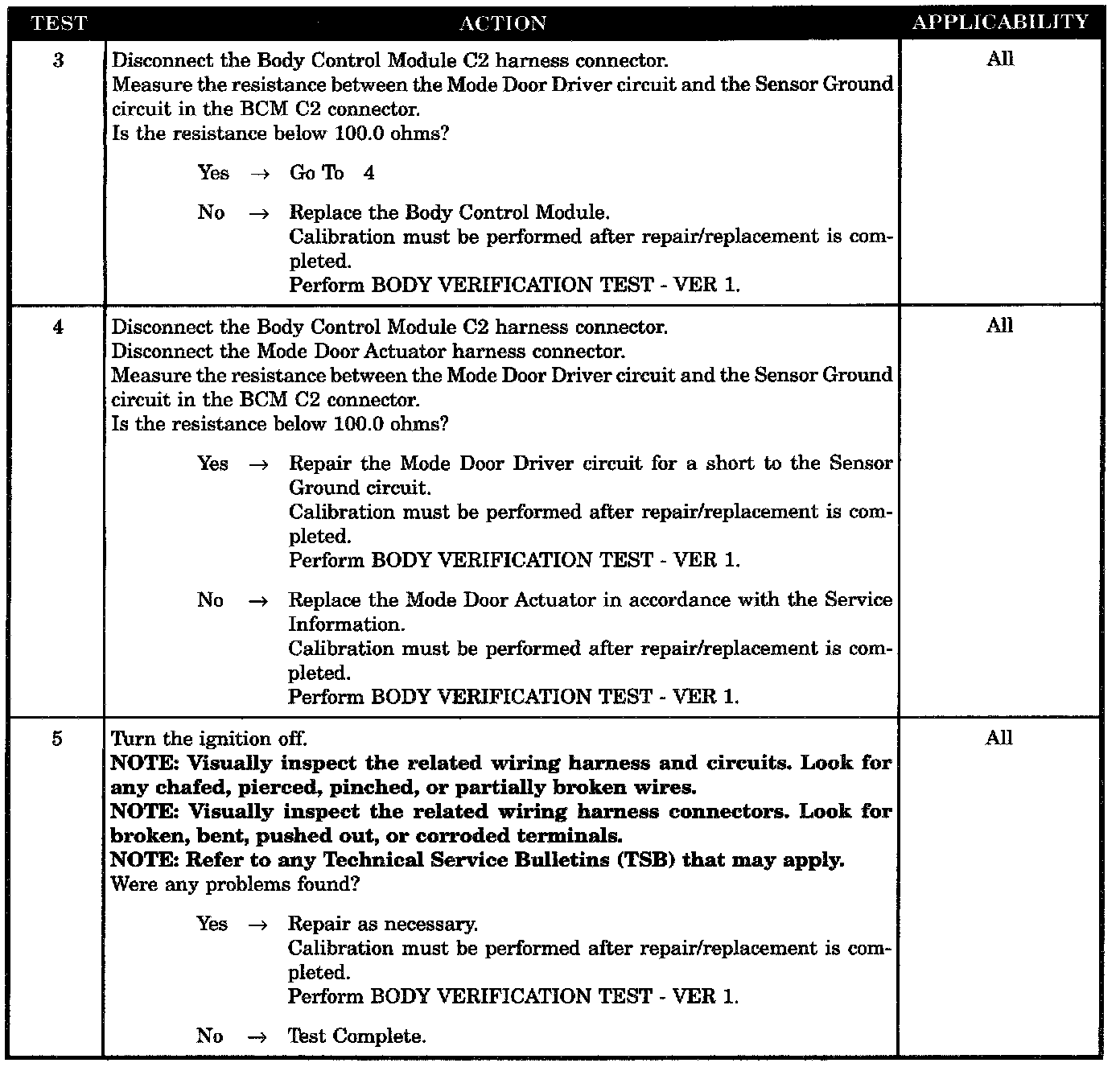 This DTC will set if the BCM detects one or more of the following outputs shorted to ground: mode door driver, blend door driver, recirculation door driver or the common door driver.
