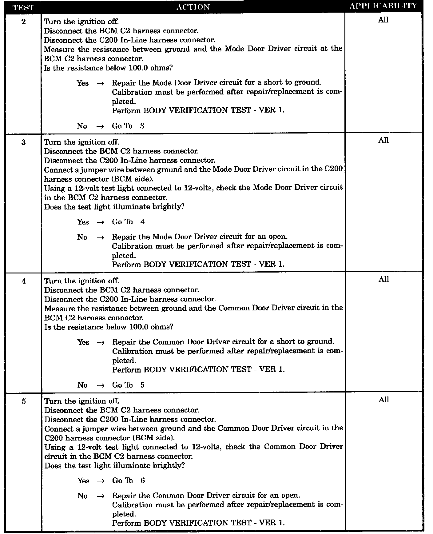 - Mode door driver circuit shorted to ground between the BCM and C200