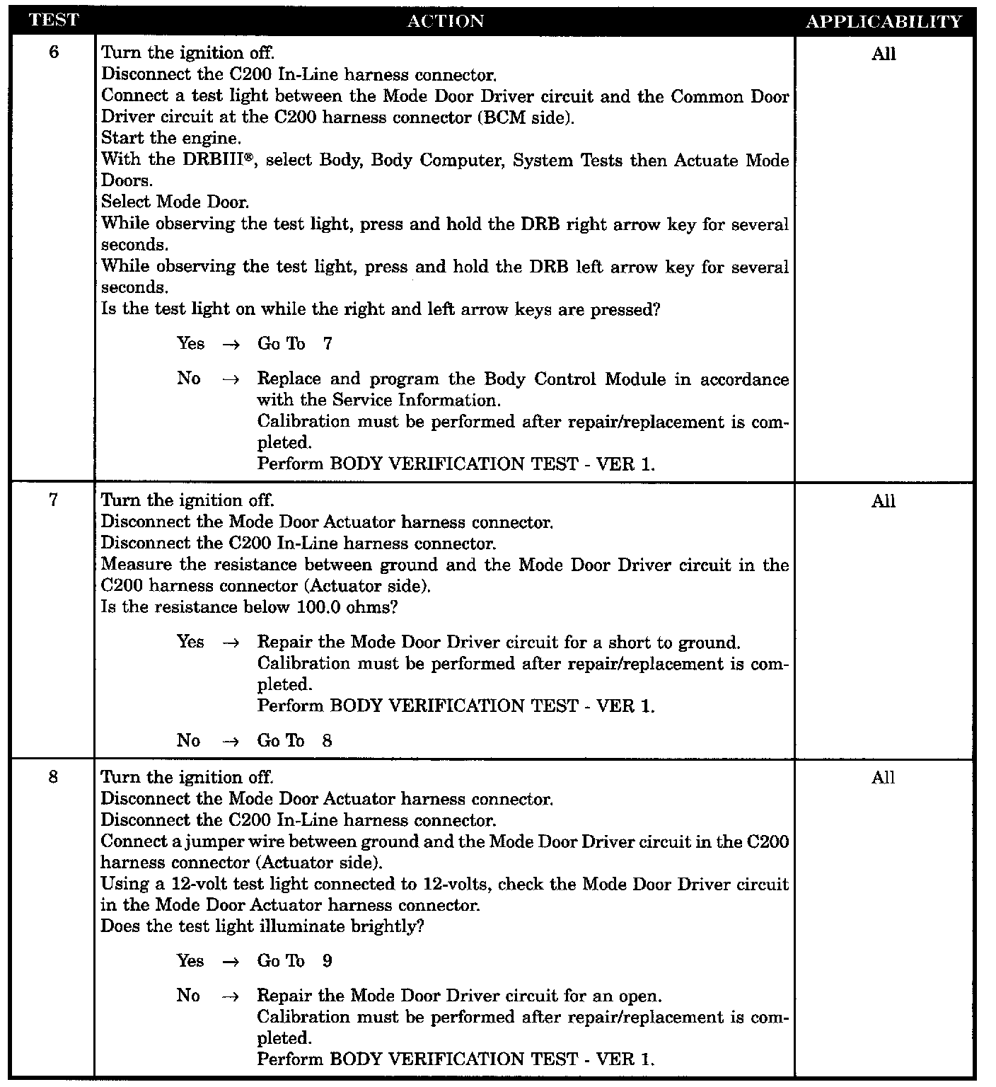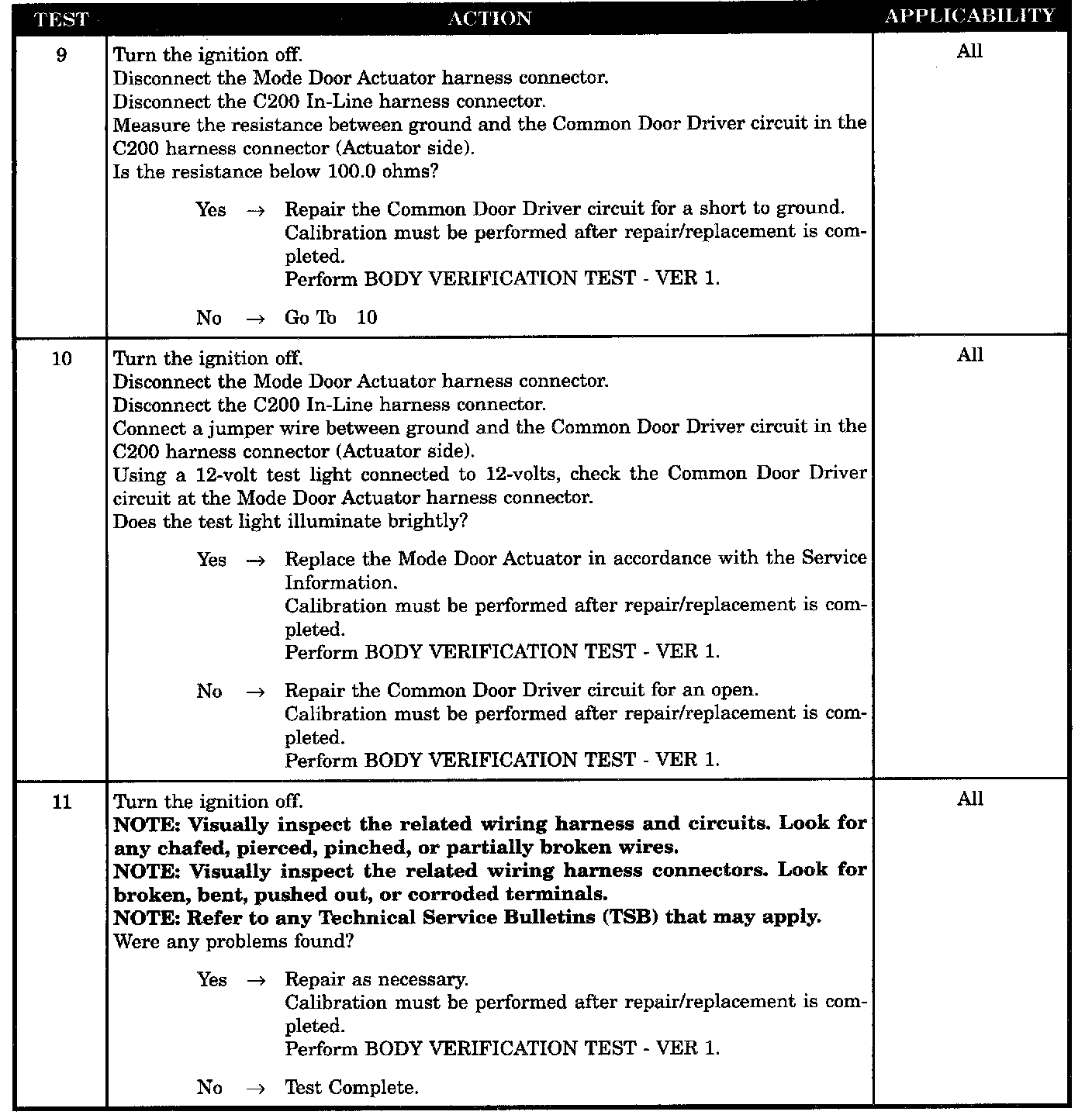 - Mode door driver circuit shorted to ground between C200 and the actuator