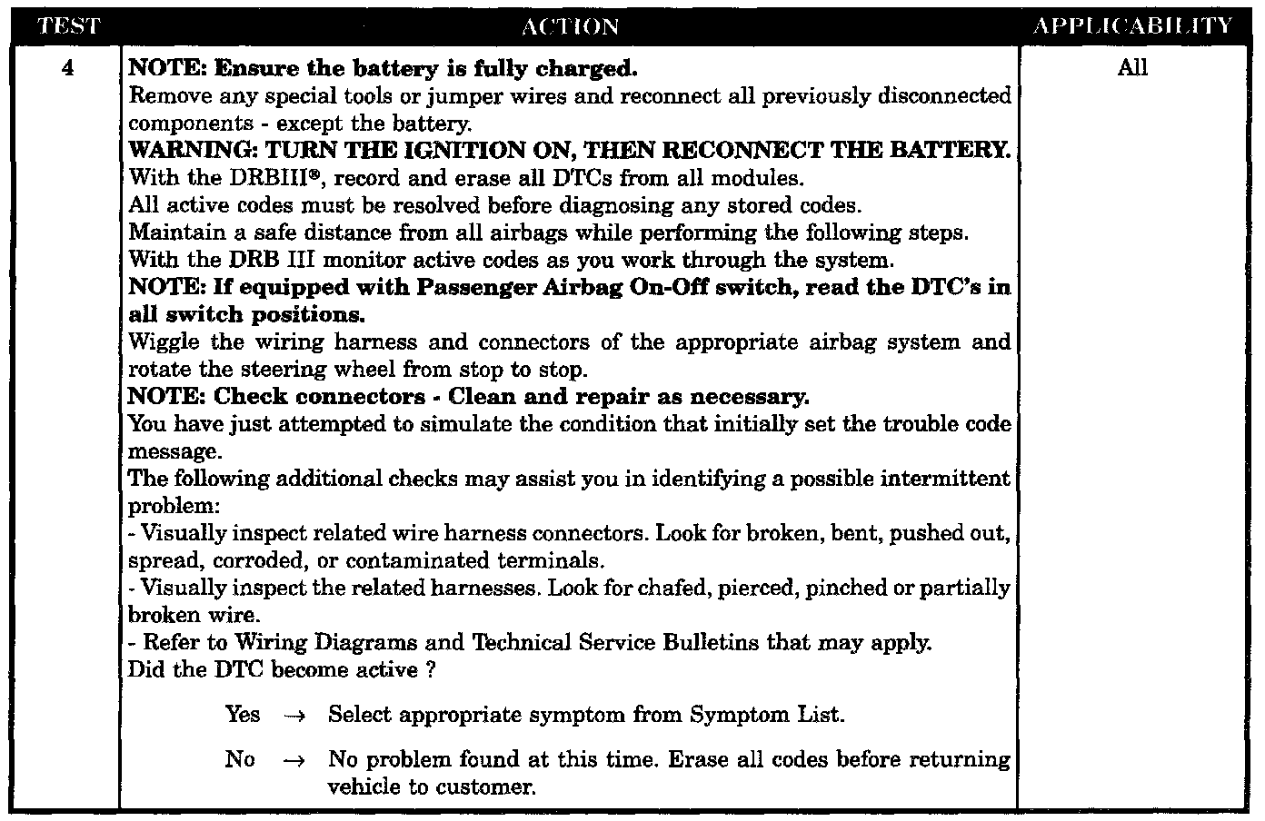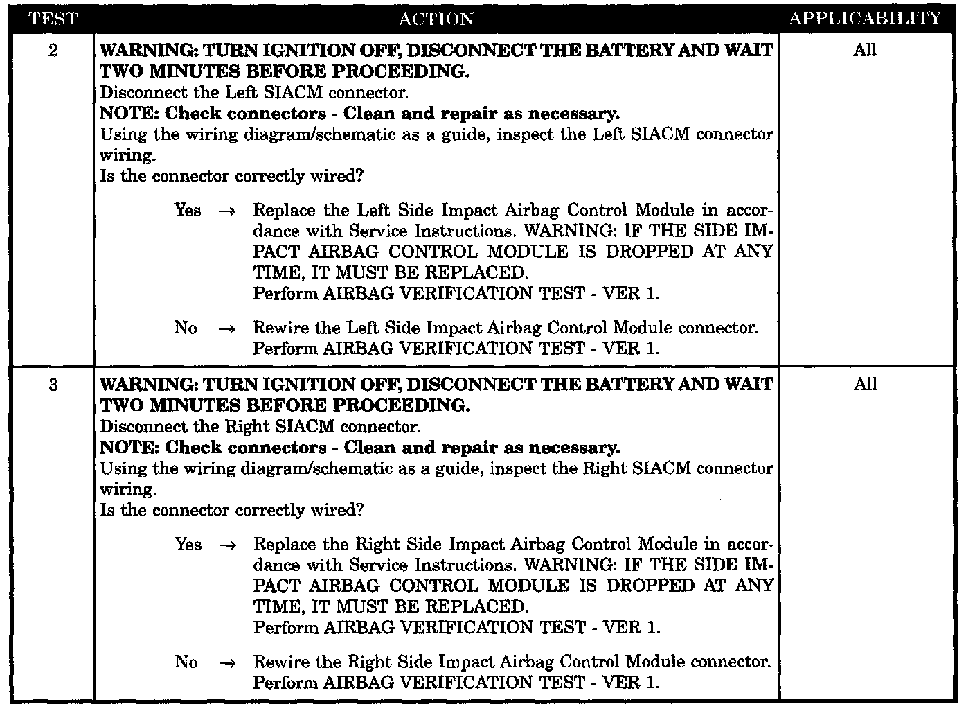 With ignition on the Side Impact Airbag Control Module monitors the unused squib terminals for the a valid squib circuit resistance.