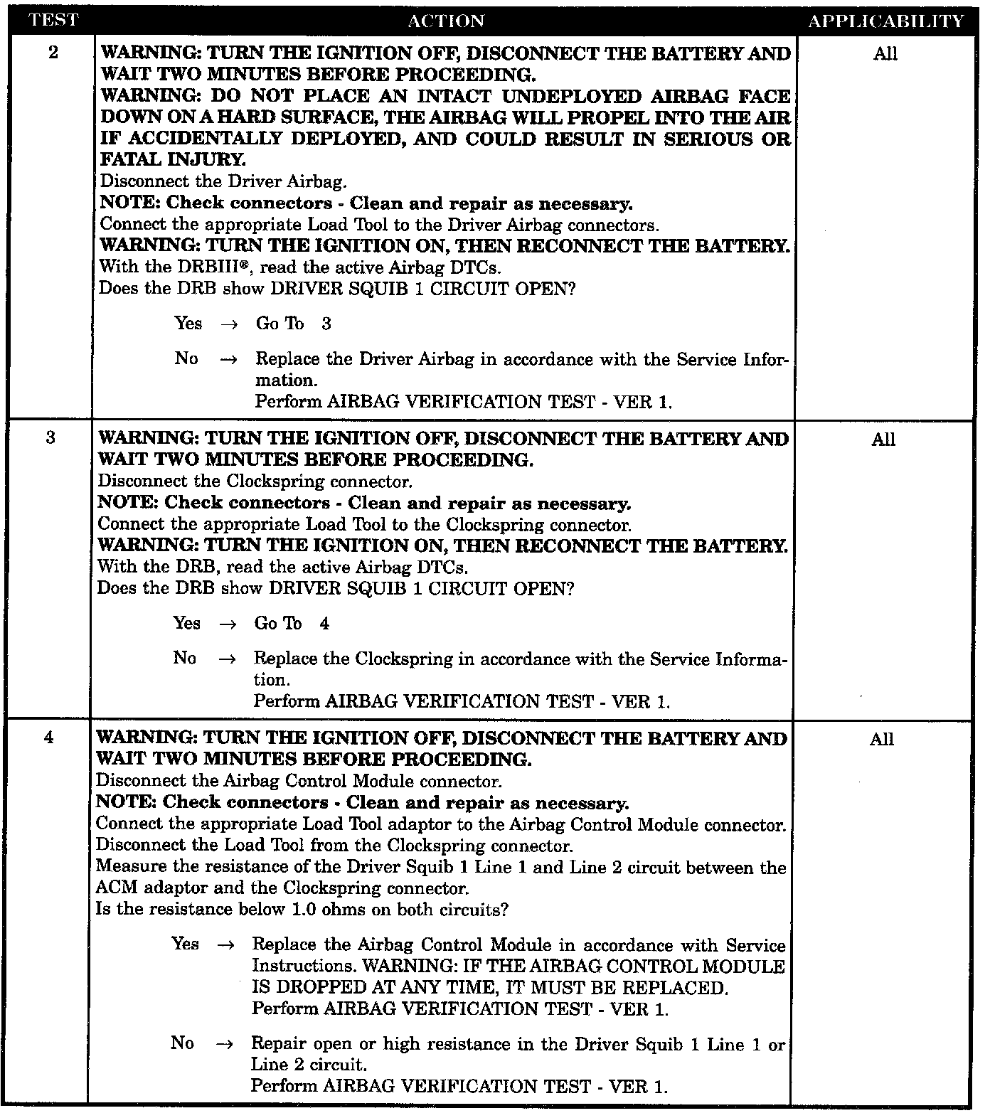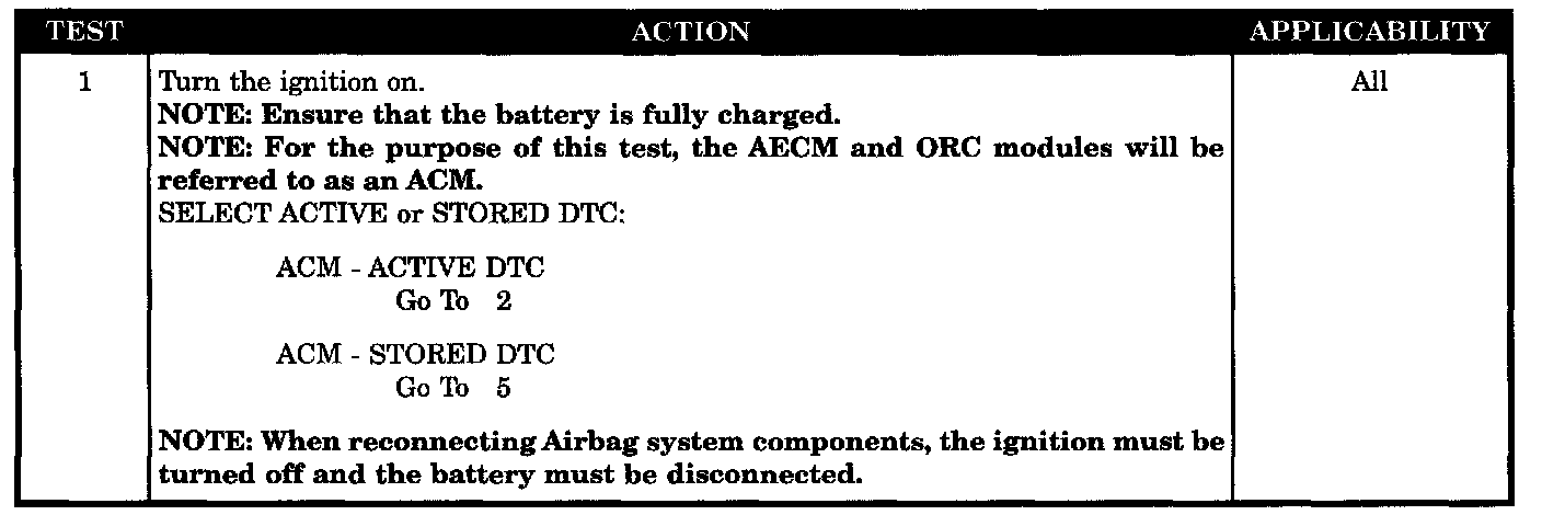 With the ignition on the ACM monitors the resistance of the Driver Squib 1 circuits.