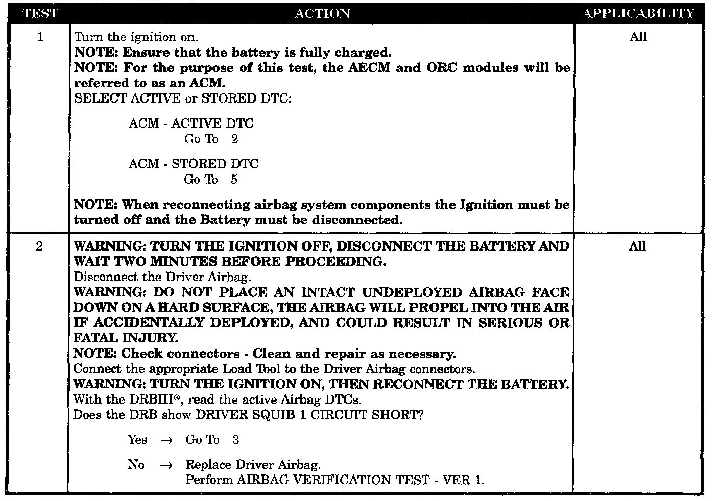With the ignition on the ACM monitors the resistance of the Driver Squib 1 circuits.