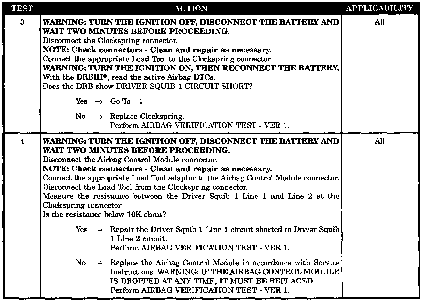 DRIVER SQUIB 1 CIRCUIT SHORT
