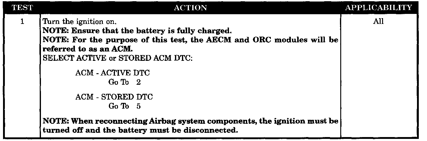 With the ignition on the ACM monitors the voltage of the Driver Squib 1 circuits.