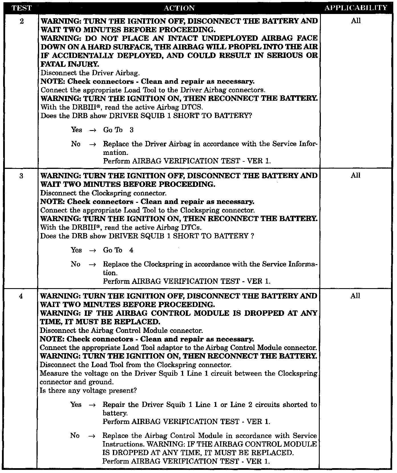 DRIVER SQUIB 1 SHORT TO BATTERY