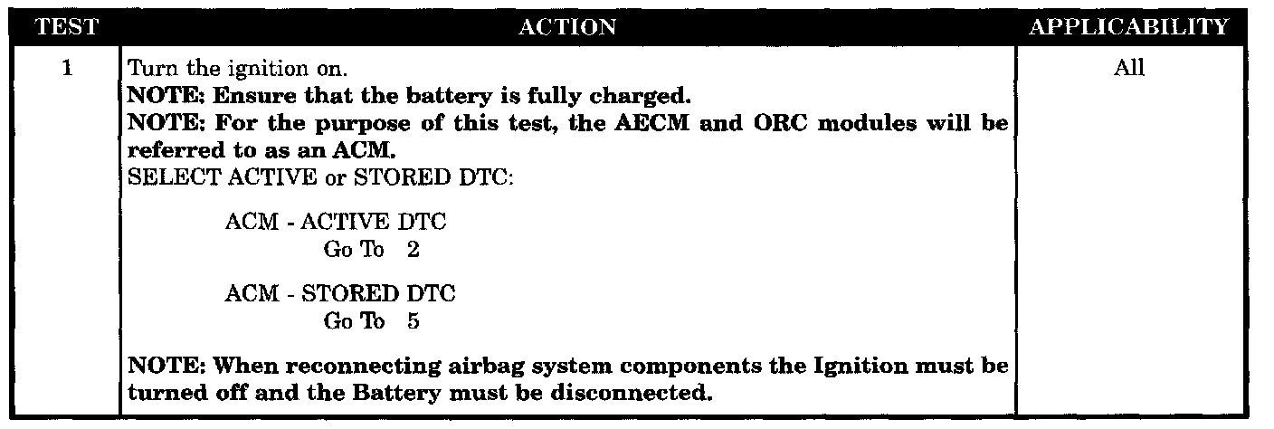 With the ignition on the ACM monitors the resistance of the Driver Squib 2 circuits.