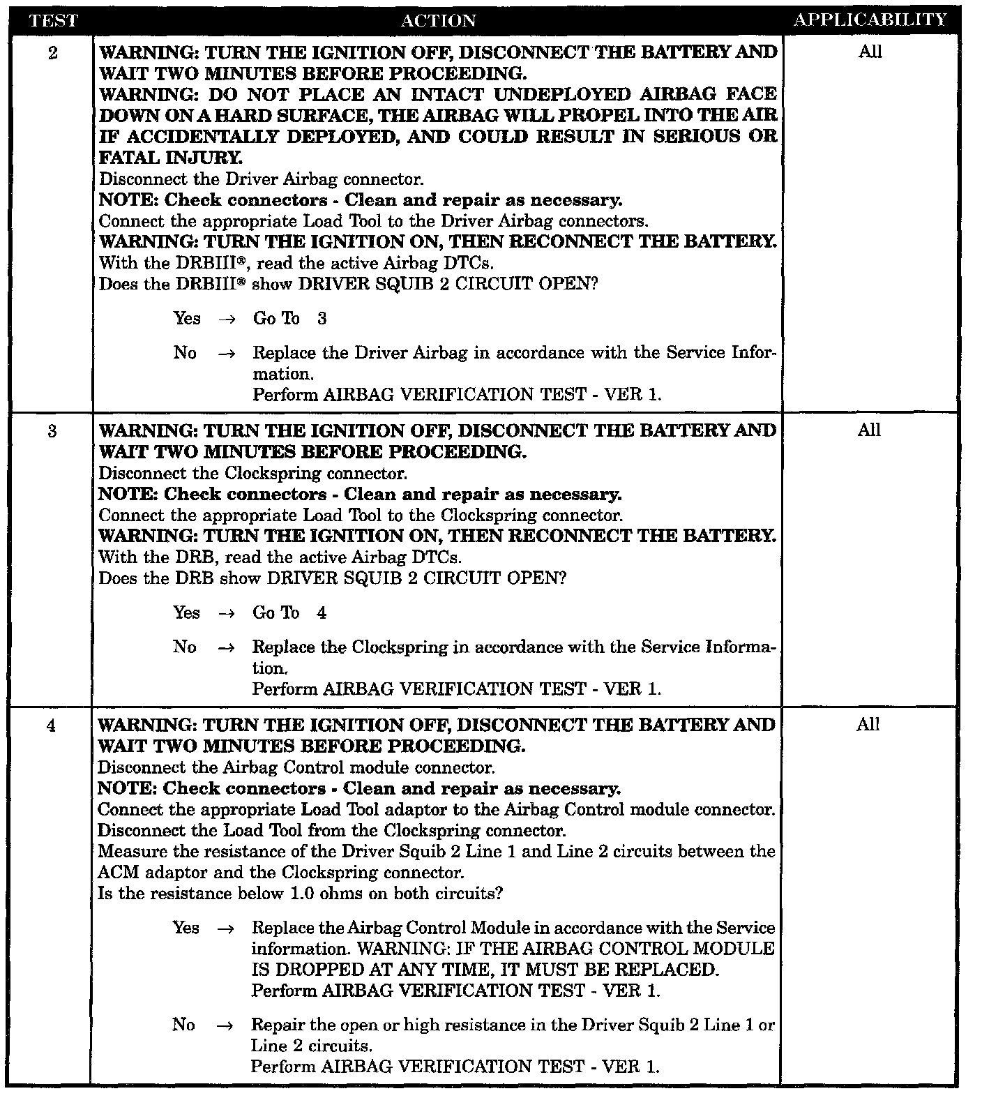 - Driver squib 2 line 1 or line 2 circuit open