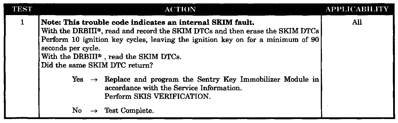 - SKIM Internal DTC Failure
