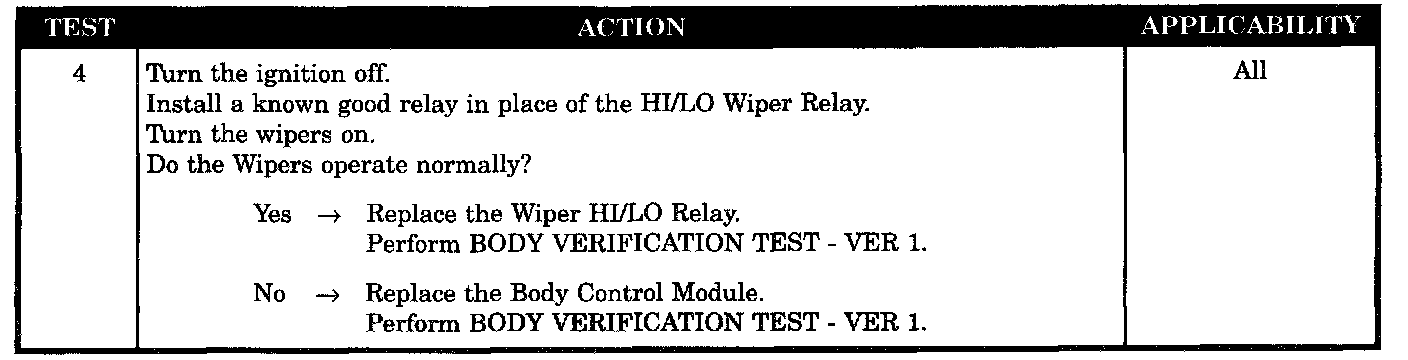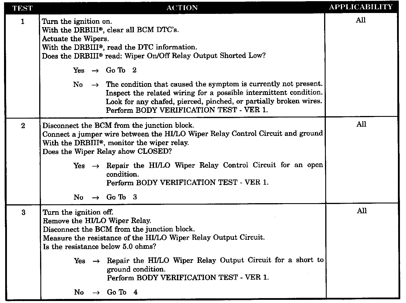 WIPER ON/OFF RELAY OUTPUT SHORTED LOW