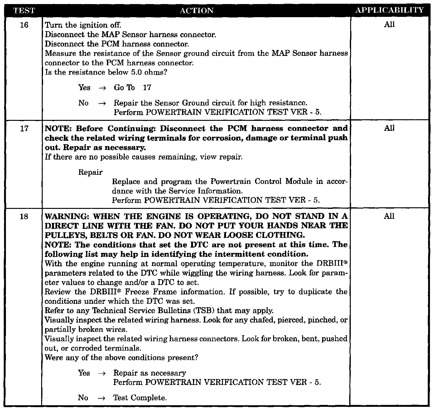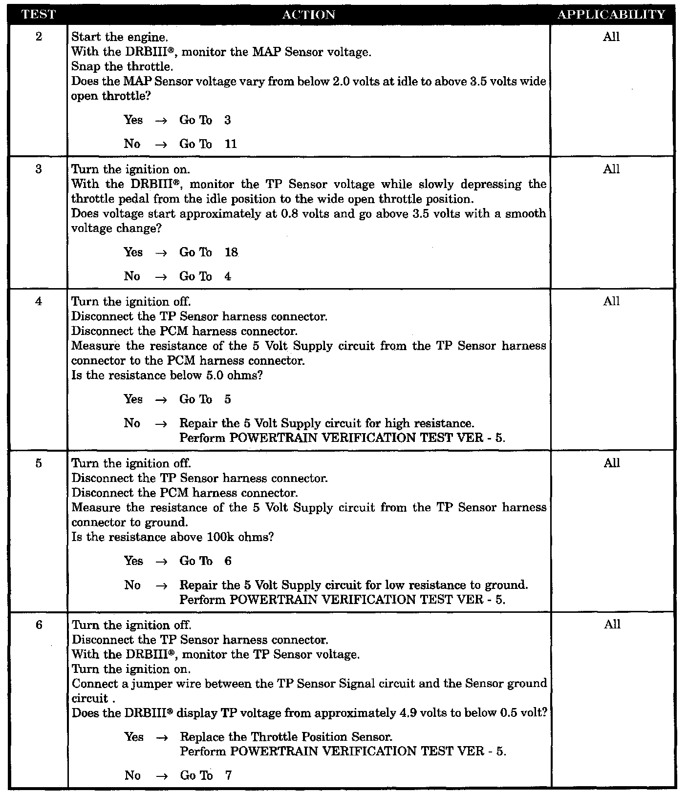 When the manifold vacuum is low, the TP sensor signal should be high. Conversely, when manifold vacuum is high, the TP sensor signal should be low. If the MAP Sensor and TP Sensor do not respond within 4 seconds as stated above, a DTC will be set.