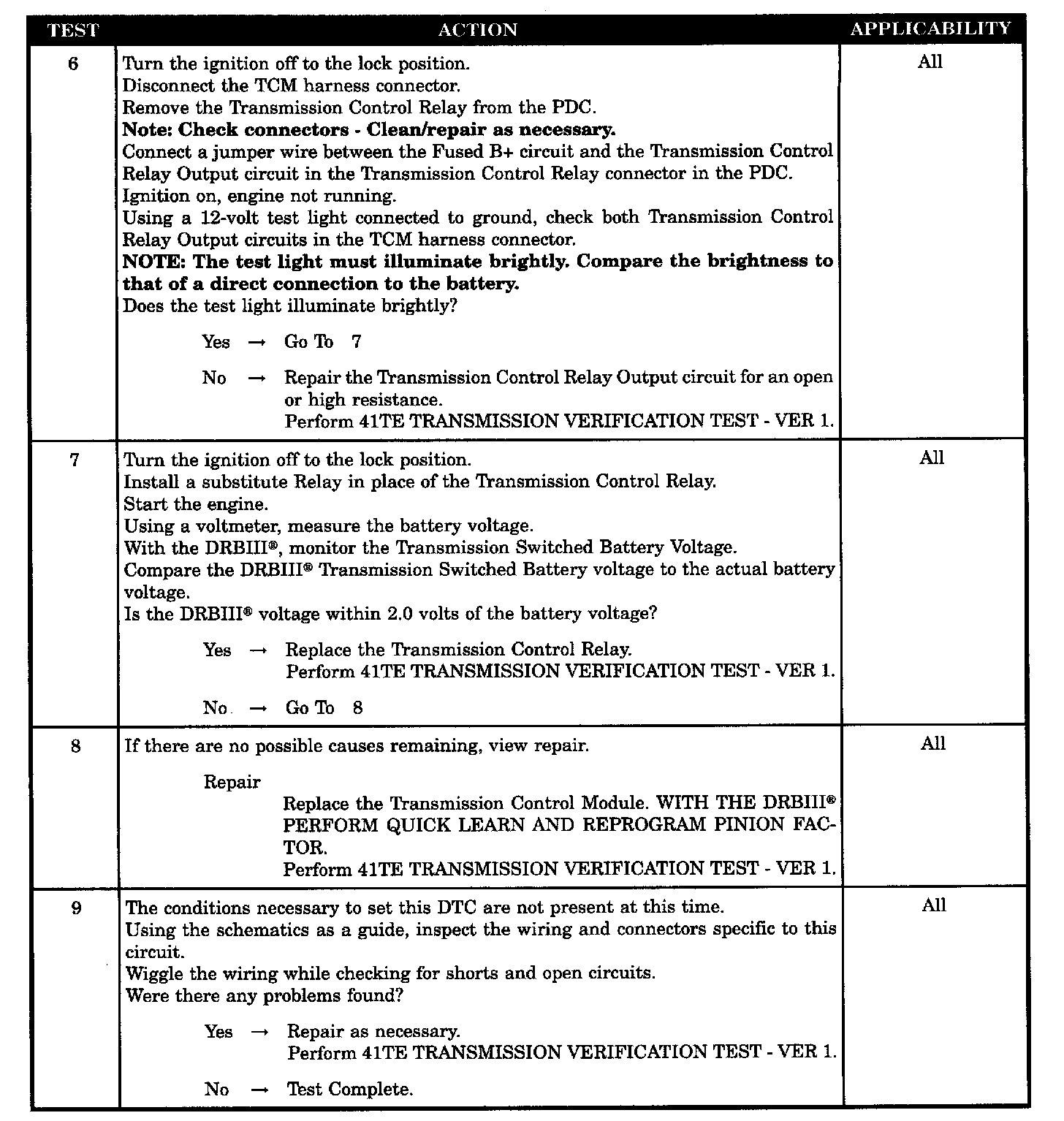 TRANSMISSION CONTROL RELAY OPEN OR HIGH RESISTANCE