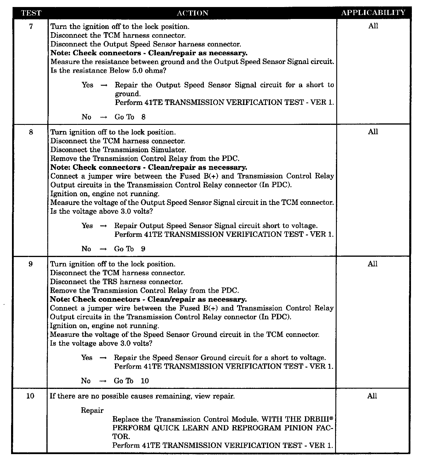OUTPUT SPEED SENSOR SIGNAL CIRCUIT SHORT TO GROUND