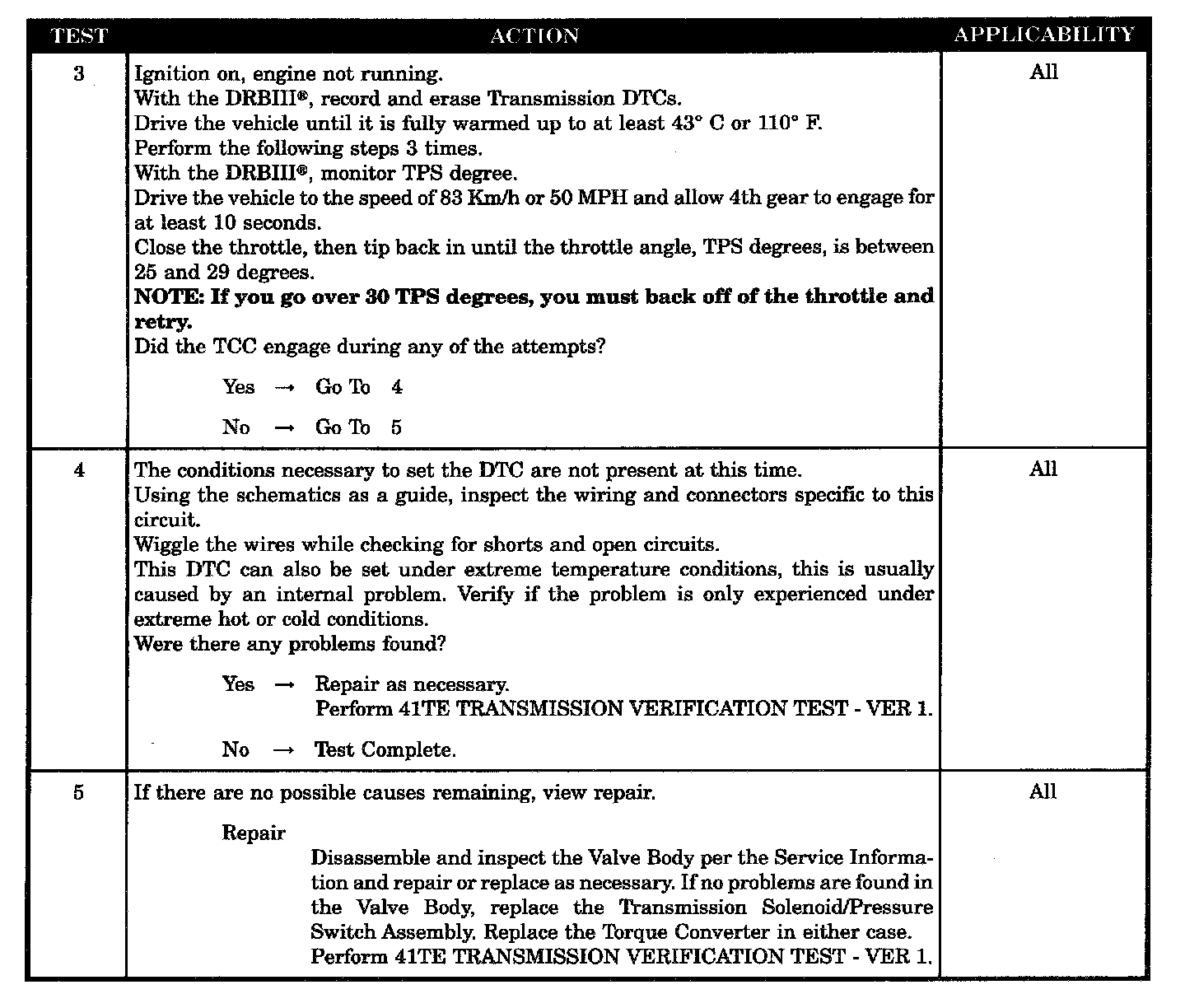 Set condition: A) Transmission must be in EMCC, with input speed > than 1750 RPM. TCC/L-R sol achieves the maximum duty cycle > can't pull engine RPM within 60 RPM of input speed. B) Transmissions is in FEMCC > engine slips TCC > than 100 RPM for 10 seconds.