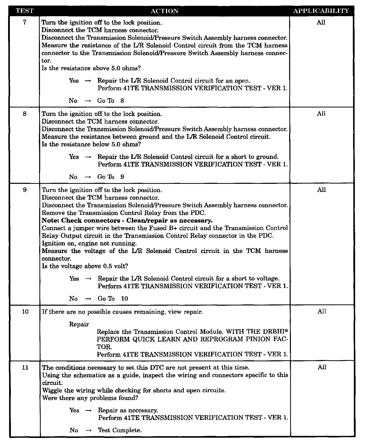 L/R SOLENOID CONTROL CIRCUIT SHORT TO GROUND