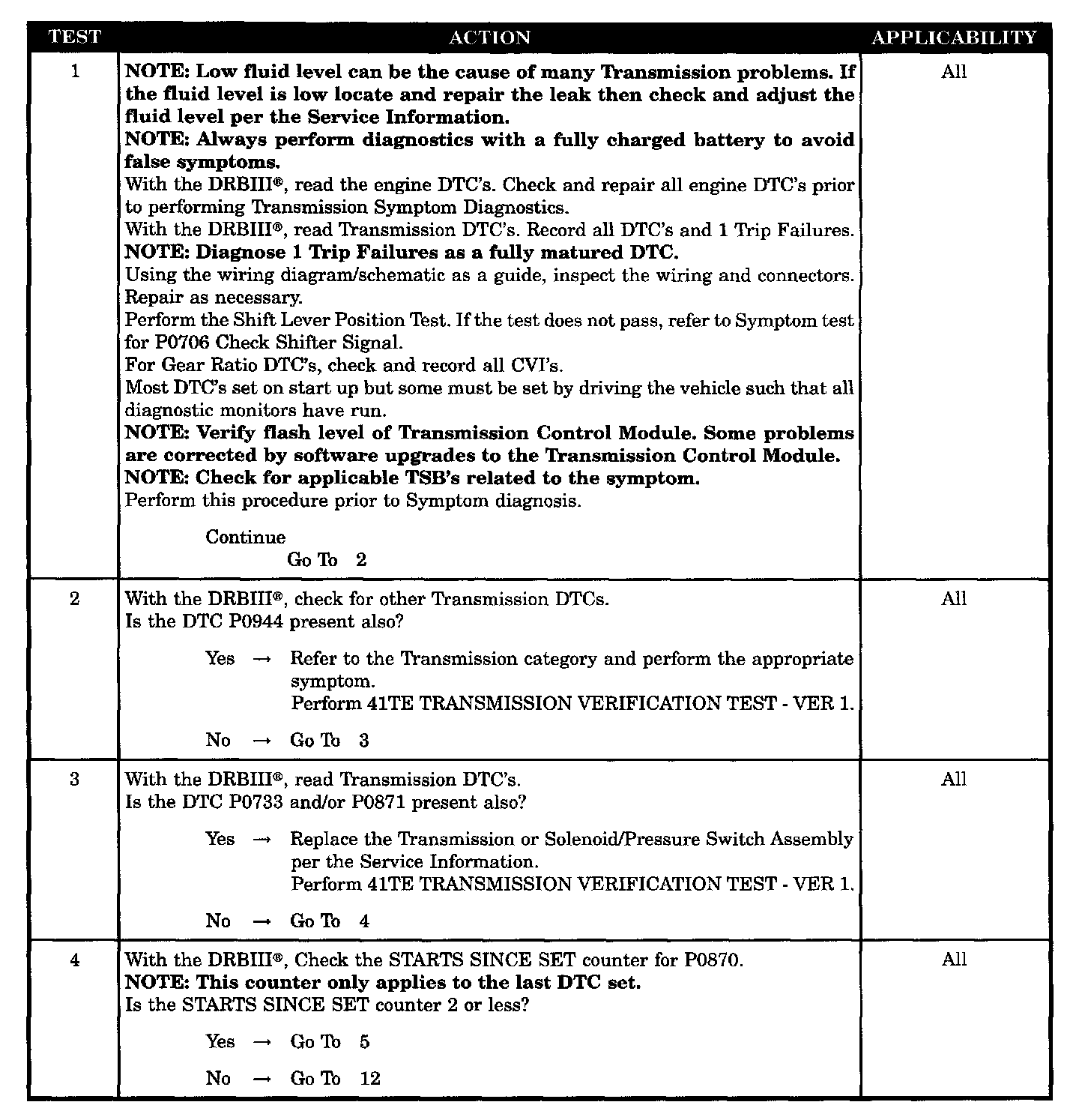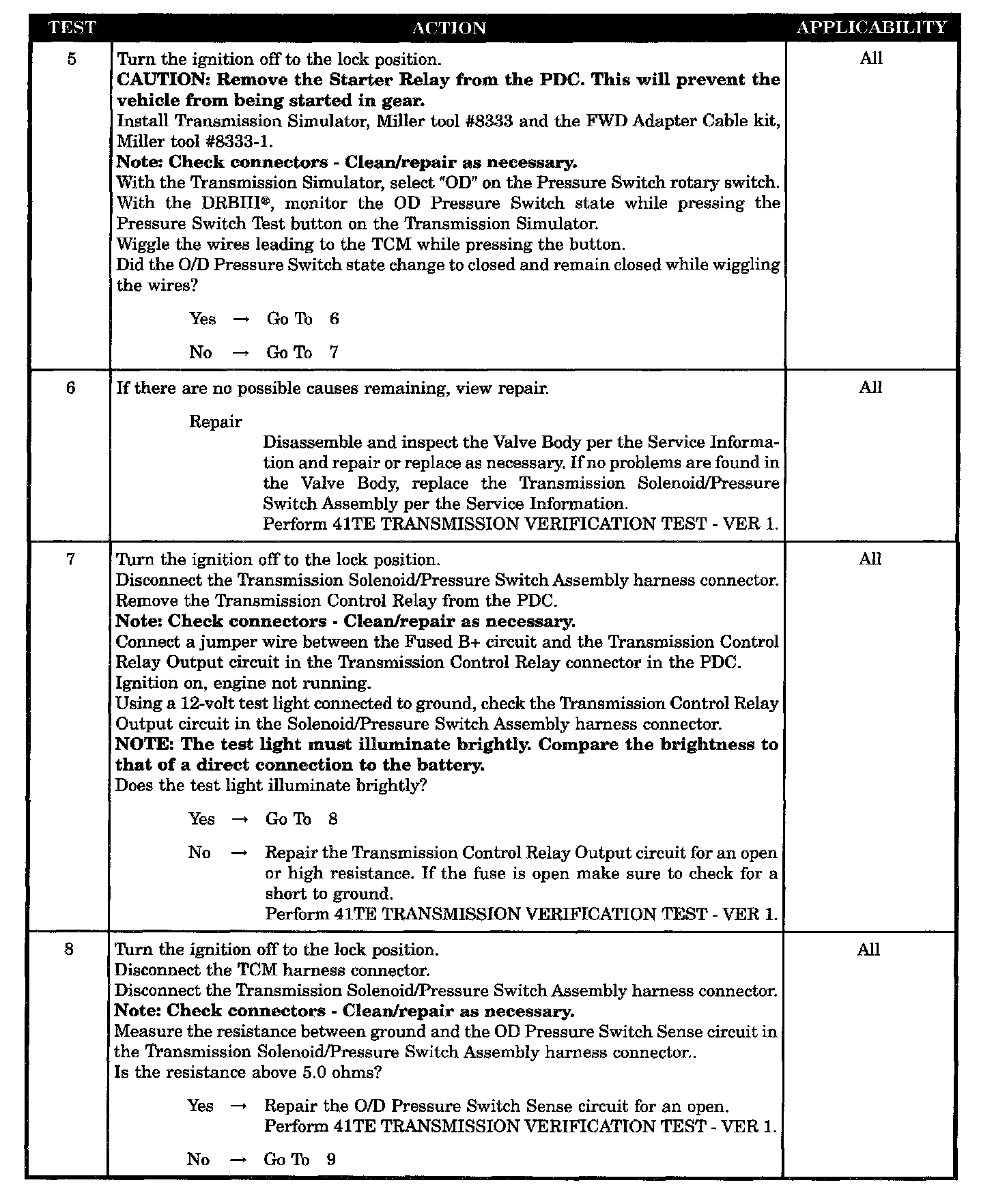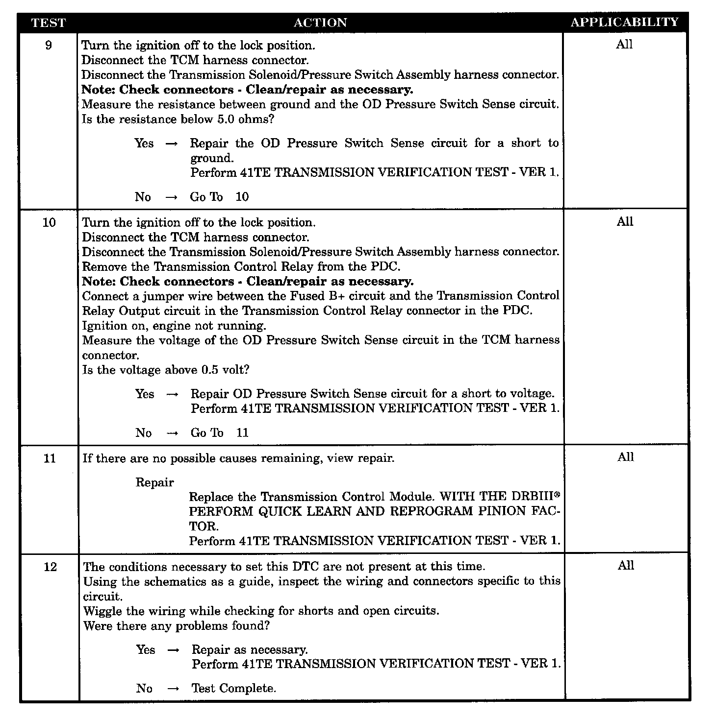 TCM - O/D HYDRAULIC TEST FAILURE