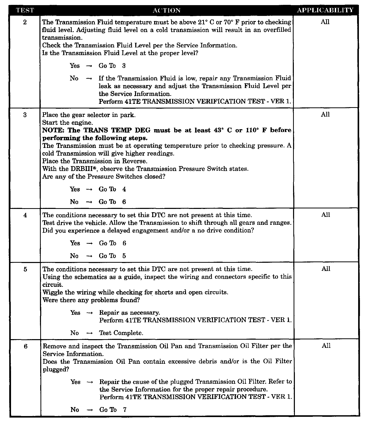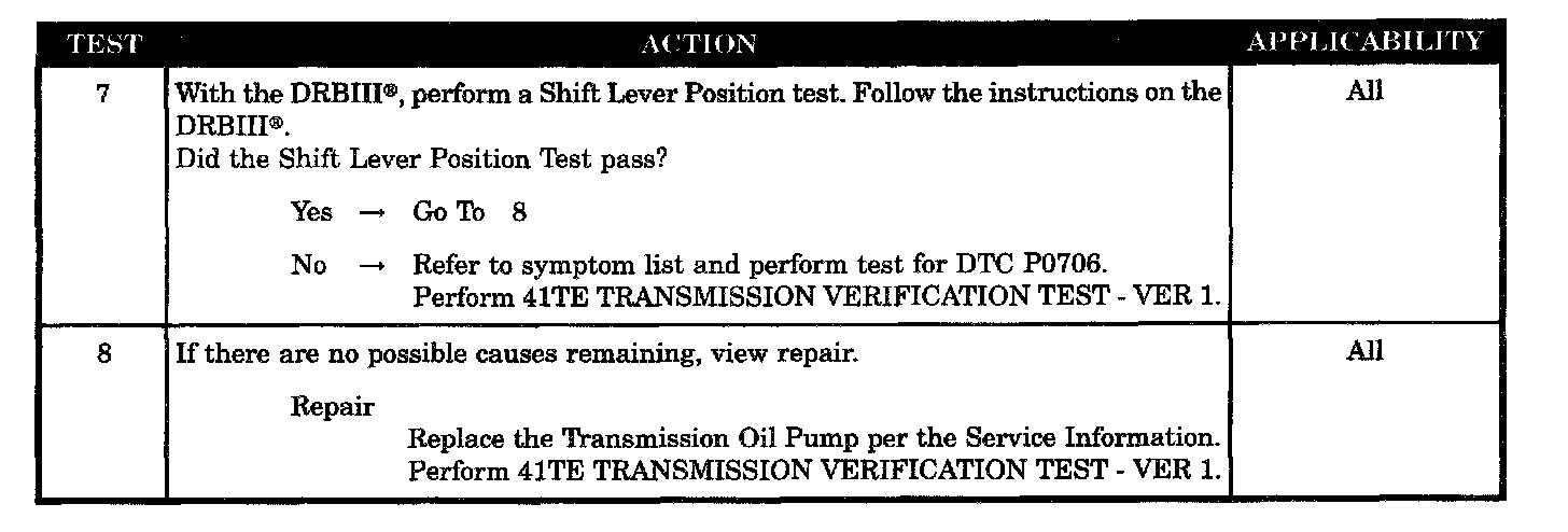 Set condition: If the Trans. begins to slip in a forward gear > the press. switch(s) that should be closed are open a loss of prime test begins. Available elements are turned on by the TCM to see if pump prime exists. The code sets if no pressure switches respond.
