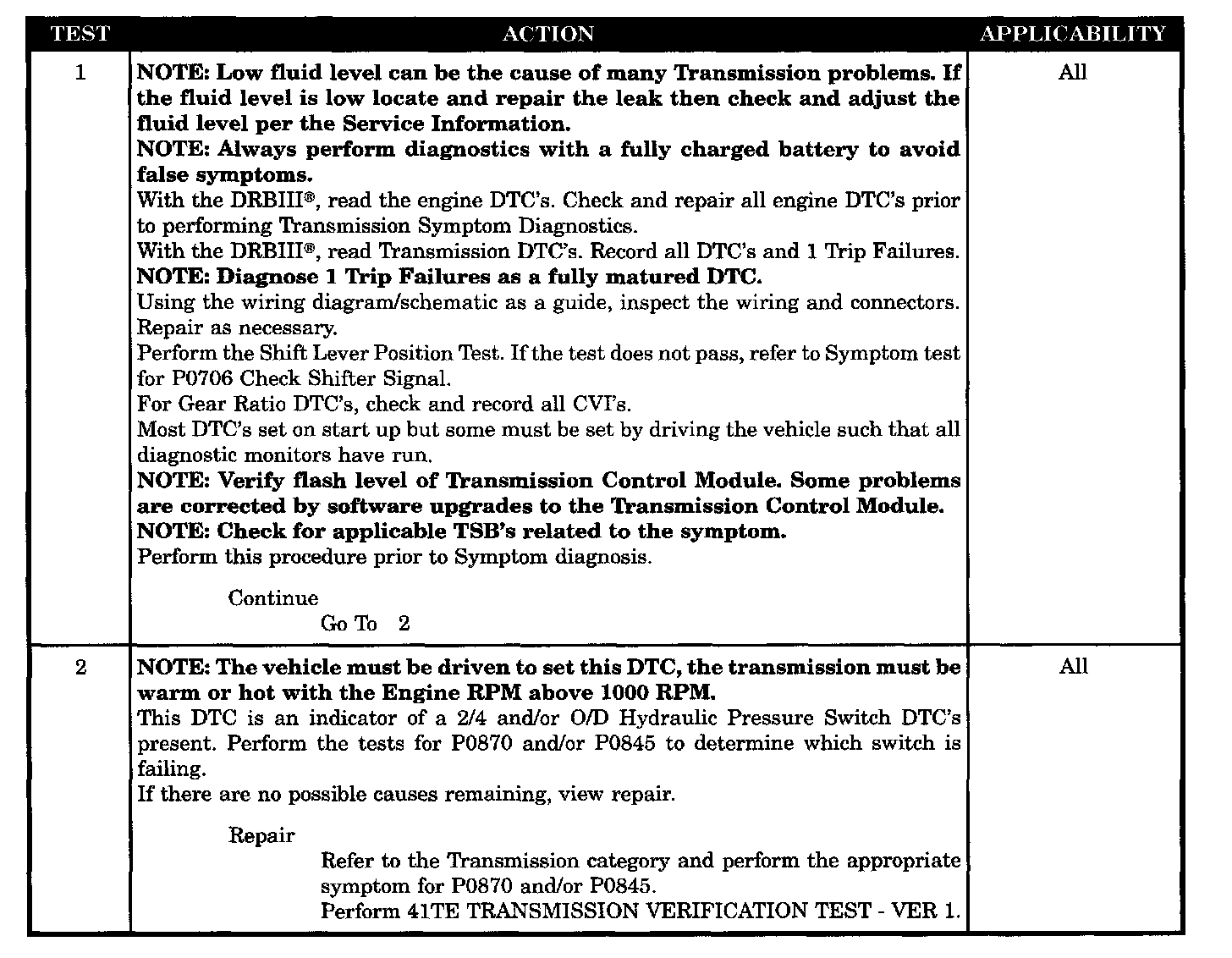 Set condition: After a shift into a forward gear, with engine speed > 1000 RPM, the TCM momentarily turns on element pressure to the clutch ckts that don't have pressure to identify the correct pressure sw closes. If the pressure sw does not close 2 times the code sets.