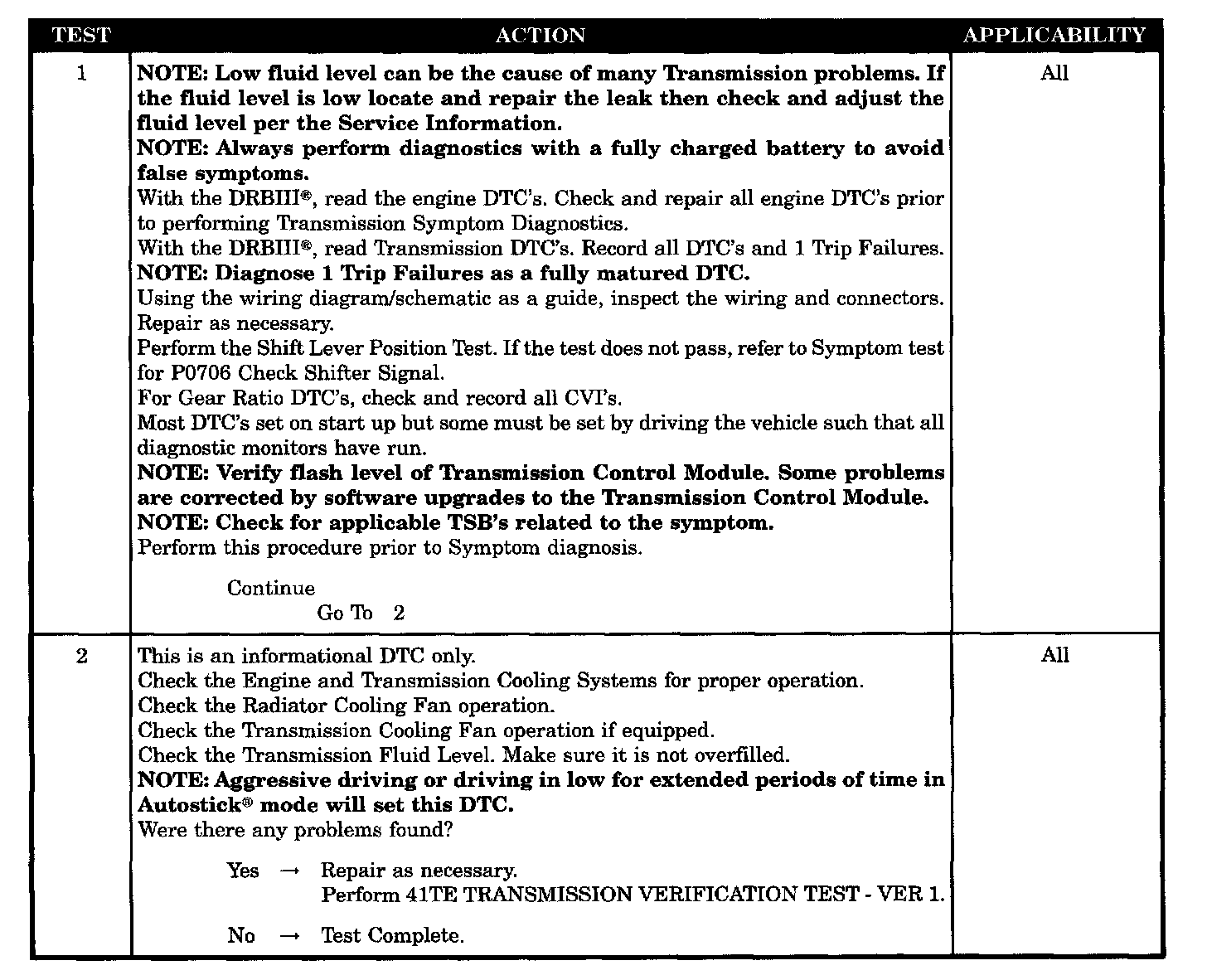 Set condition: If the engine temperature exceeds 124°C or 255°F or the transmission temperature exceeds 135°C or 275°F while in AutoStick mode. Note: Aggressive driving or driving in low for extended periods of time in AutoStick (R) mode will set this DTC.