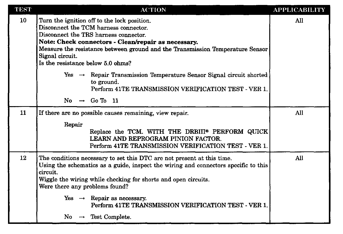 TRANSMISSION TEMPERATURE SENSOR SIGNAL CIRCUIT SHORT TO GROUND