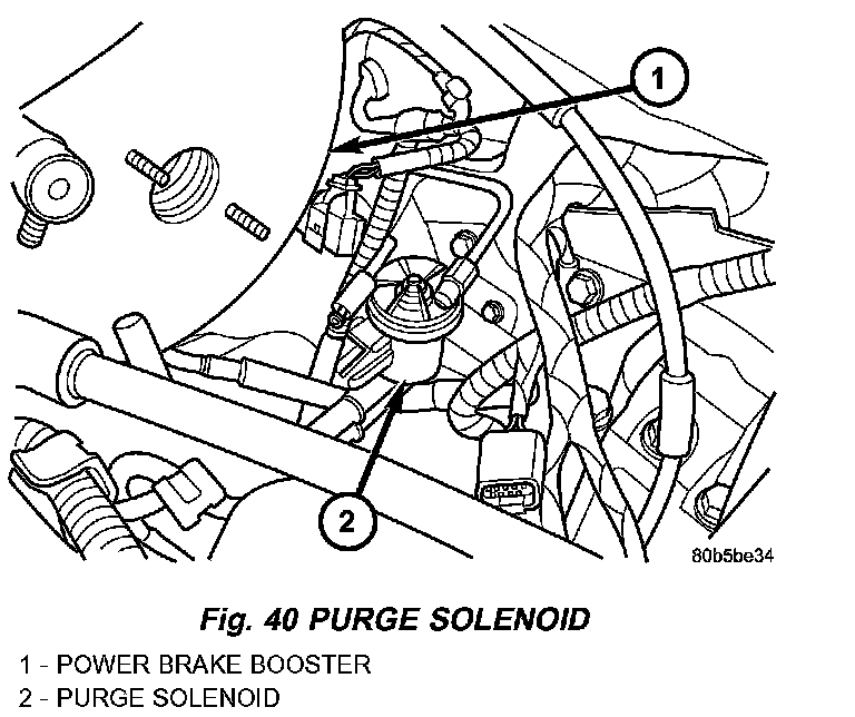 7. Remove the electrical connector and mounting screw from the purge solenoid mounted on the left frame rail. Allow the solenoid to drop downward.