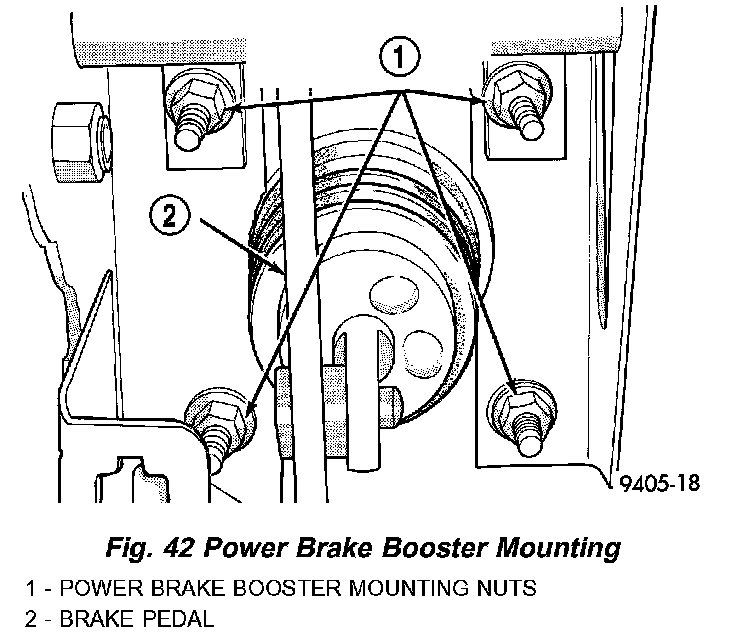 REMOVAL - POWER BRAKE BOOSTER1. Remove the remote ground cable from the ground stud located on the left shock tower.