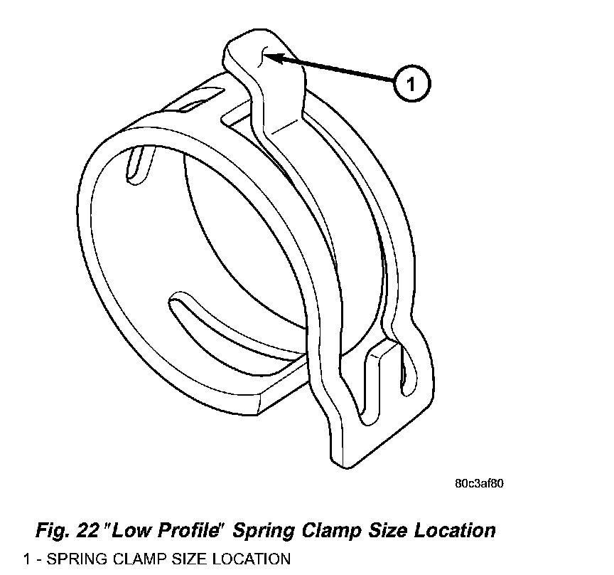 DESCRIPTION - HOSE CLAMPSThe cooling system uses constant tension spring type hose clamps. If a spring type clamp replacement is necessary, replace with the original Mopar equipment spring type clamp.