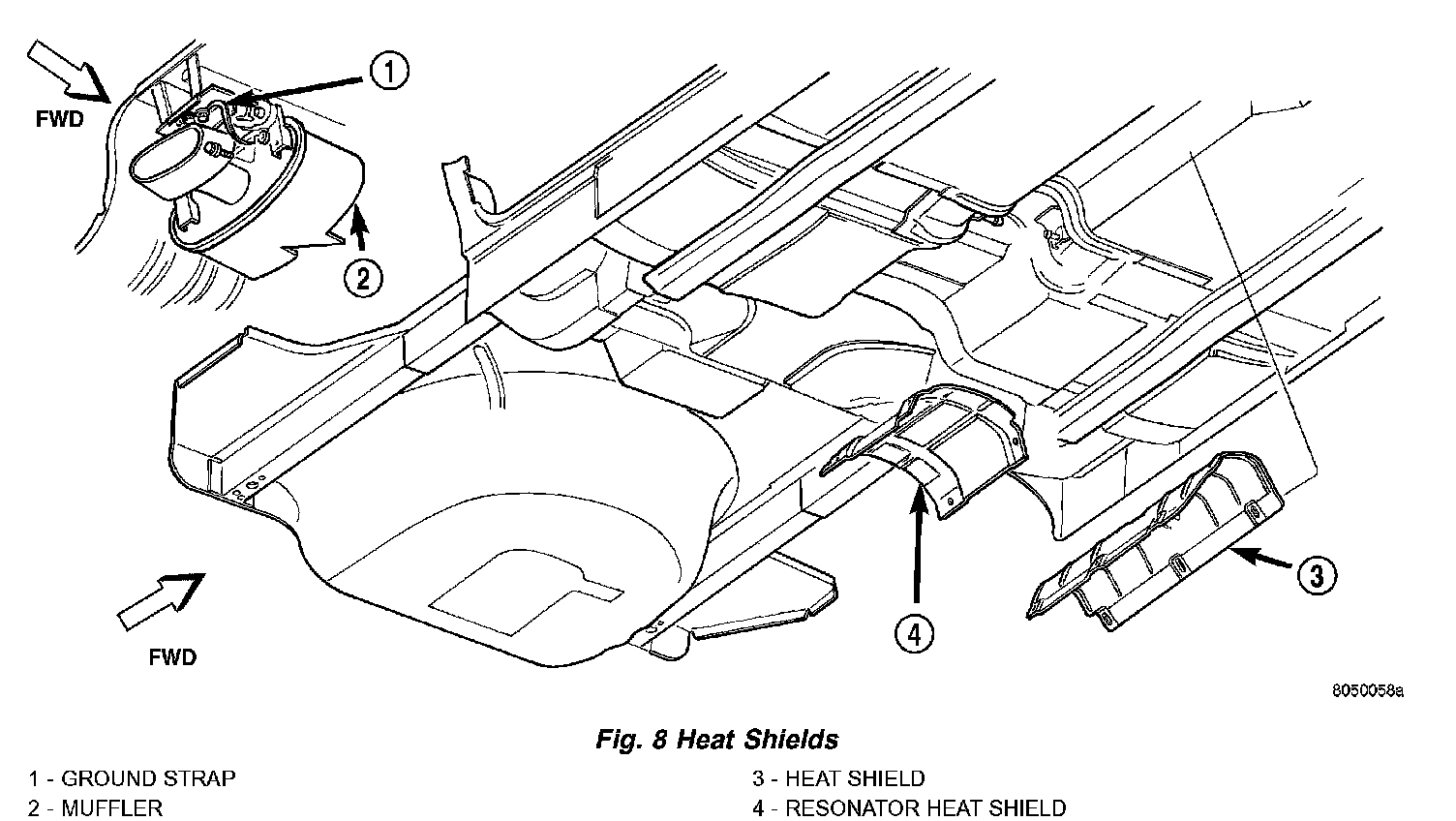 The exhaust system heat shields are attached to the under body of the vehicle.