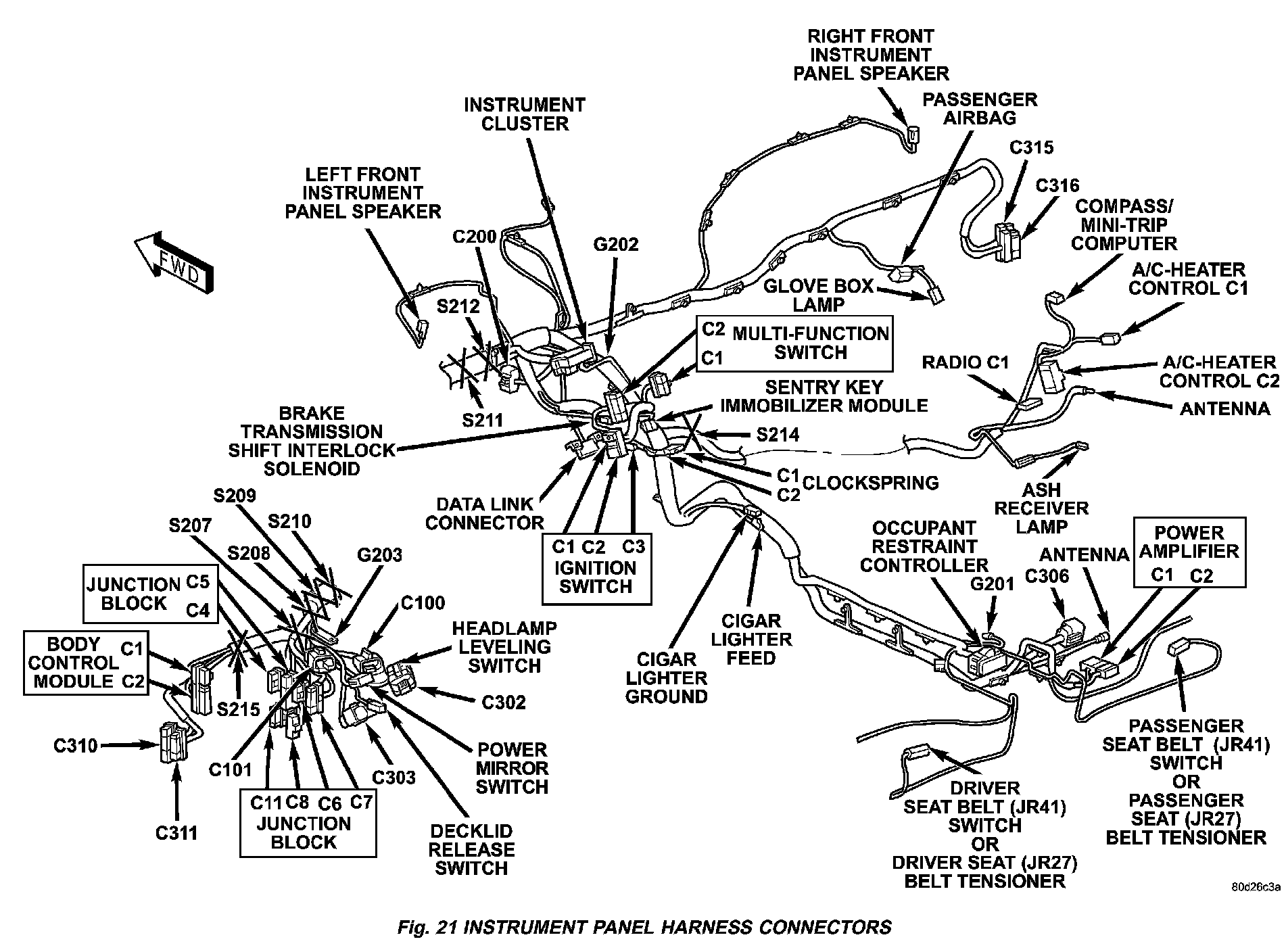 Fig.21 Instrument Panel Harness Connectors: