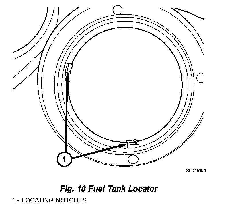 2. Position fuel pump in the tank. Make sure the alignment tabs on the underside of the fuel pump module flange sits in the notches on the fuel tank (Fig. 10).