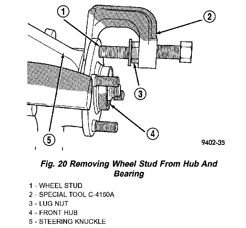 6. Tighten down on special tool, this will push the wheel stud out of the hub and bearing flange.