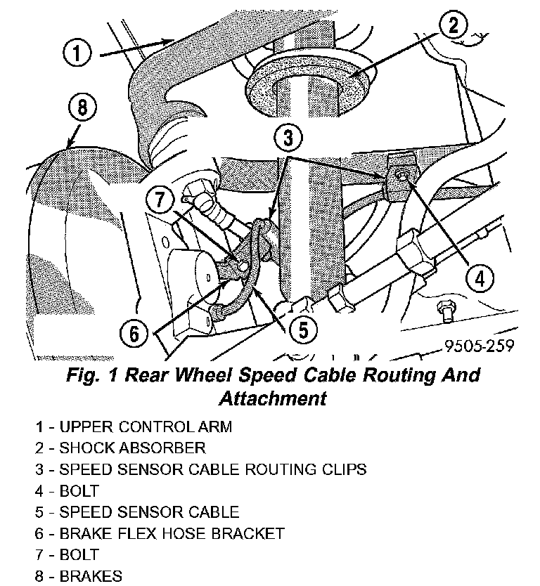 7. Attach routing bracket for speed sensor cable to brake flex hose bracket and securely tighten attaching bolt.