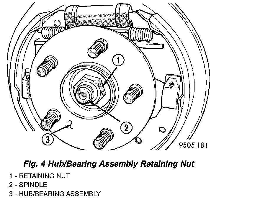3. Remove rear brake drum from rear hub and bearing assembly.