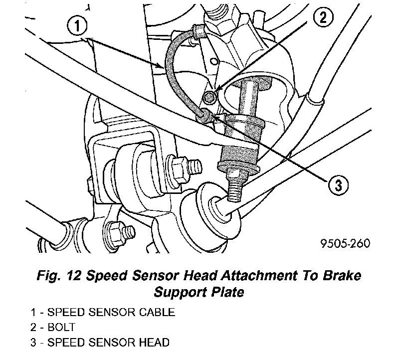 4. If vehicle is equipped with antilock brakes remove the rear wheel speed sensor from the brake support plate and brake flex hose routing bracket.