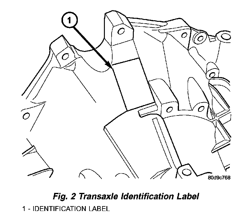 TRANSAXLE IDENTIFICATIONThe 41TE transaxle is identified by a barcode label that is fixed to the transaxle case as shown in (Fig. 2).
