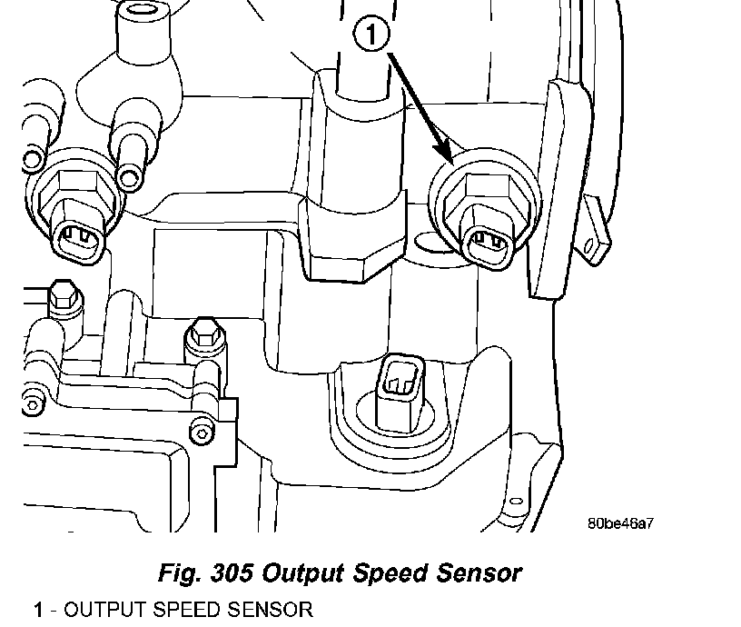 4. Unscrew and remove output speed sensor (Fig. 305).