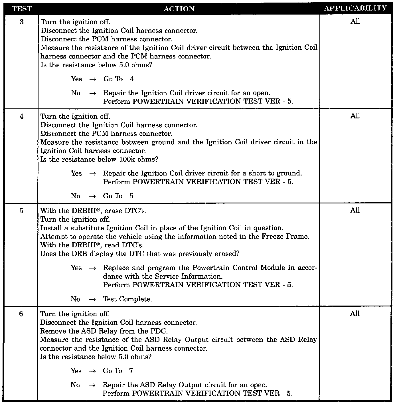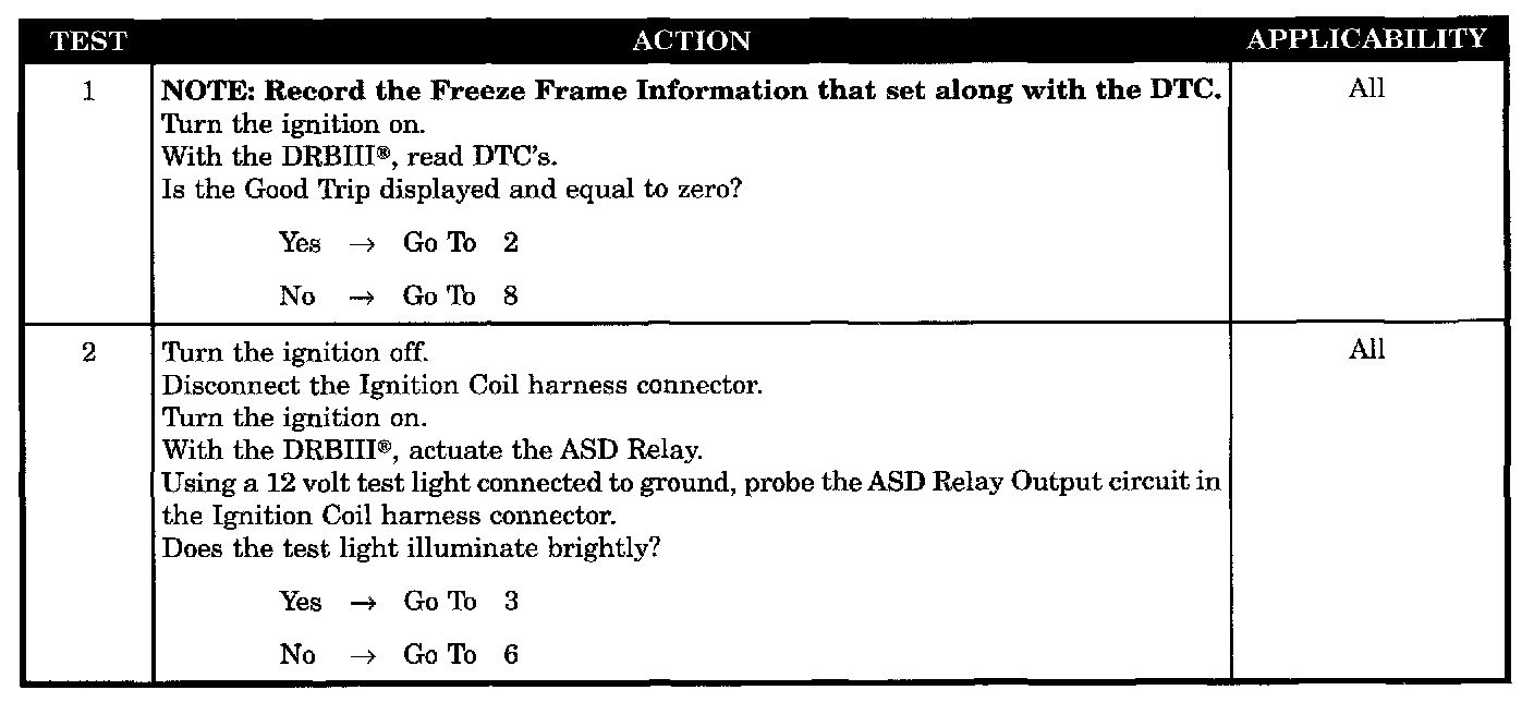 With battery voltage greater than 8 volts during engine cranking or greater than 13 volts with engine running Engine RPM less than 3000. No coil in dwell during test.