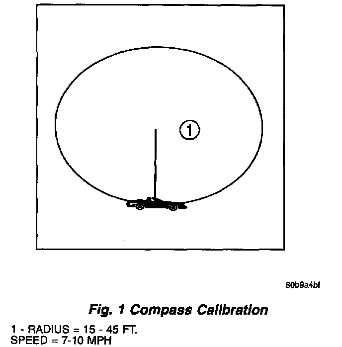 3. Drive the vehicle in about two circles on a level surface in an area free of large metal objects, such as other vehicles, large buildings, bridges, underground cables, railroad tracks, etc.