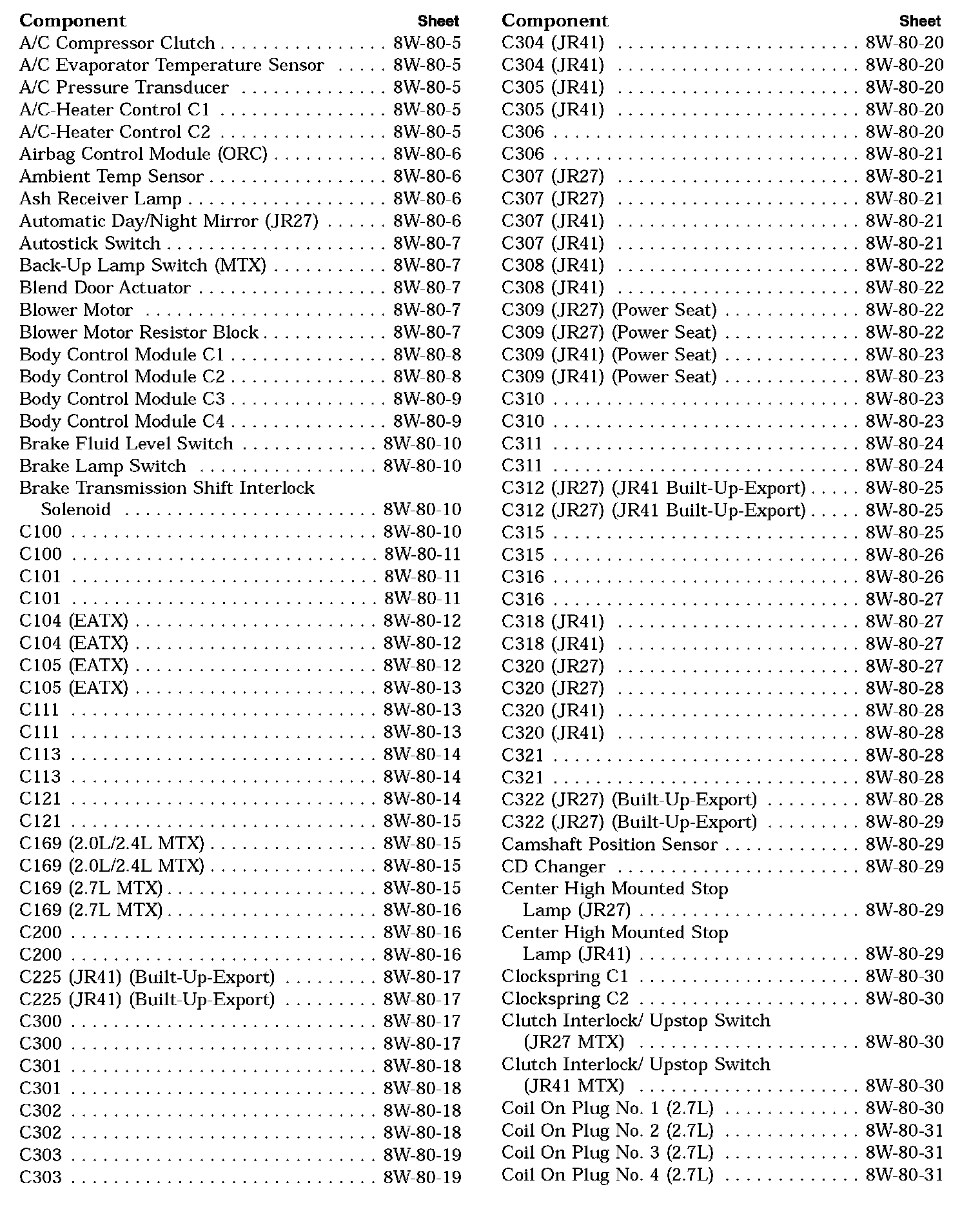 Connector Pin-Outs Component Index (Part 1 Of 4):