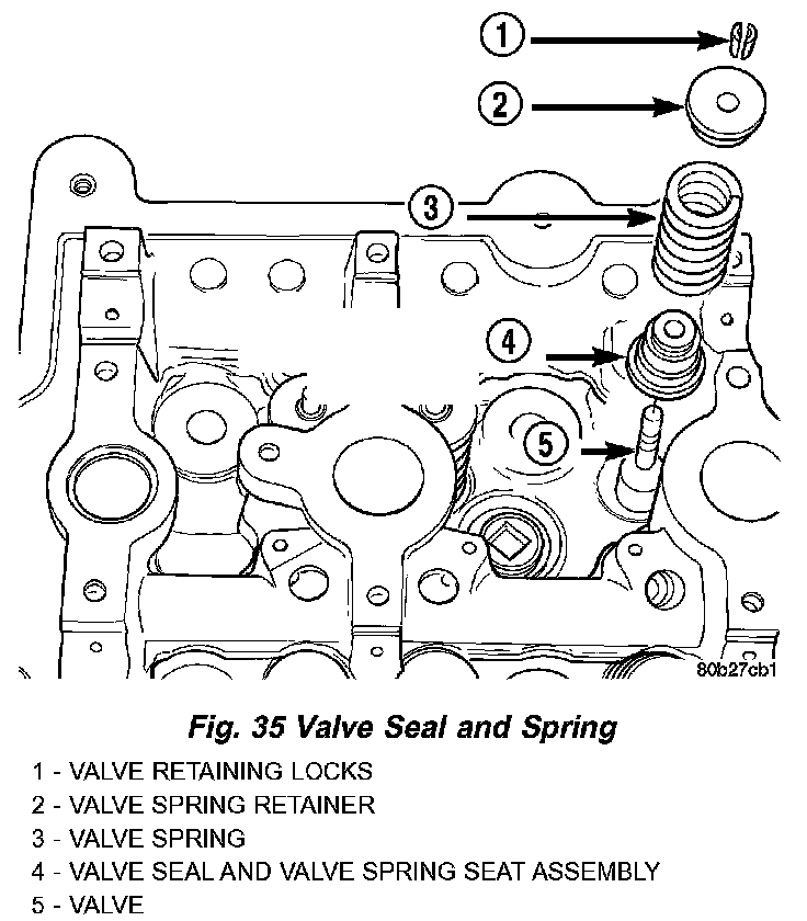 4. Position valve springs and retainer on spring seat (Fig. 35).