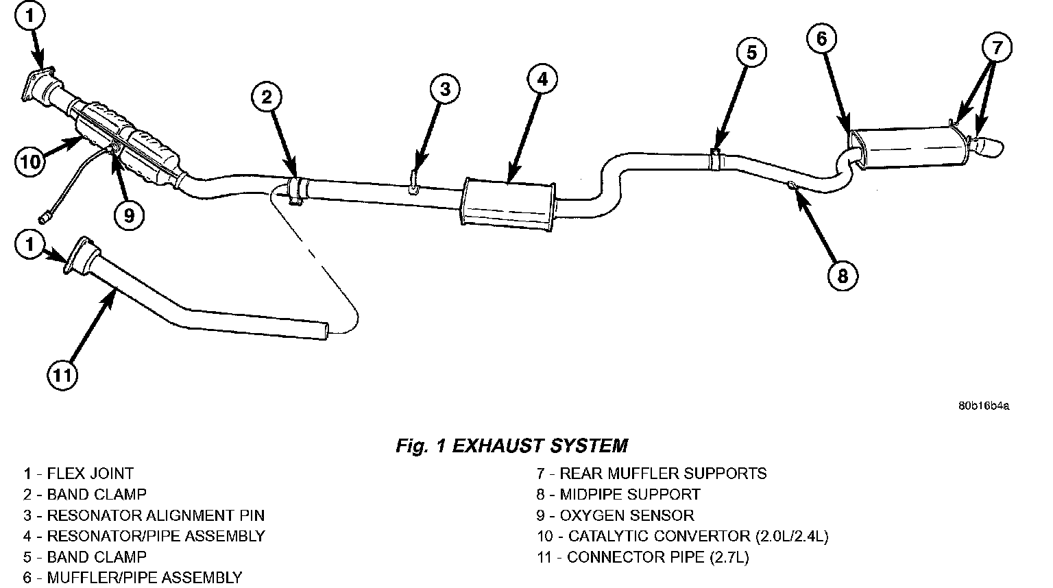 - Band clamps are spot welded to exhaust system. If a band clamp must be replaced, the spot weld must be ground off the exhaust pipe.