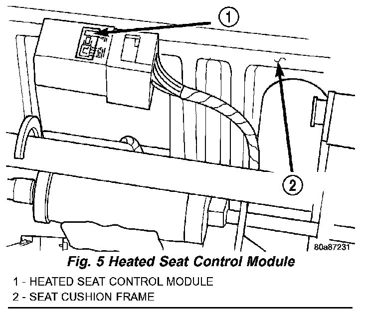4. Disconnect the wire harness connector from the connector receptacle on the back of the heated seat module.