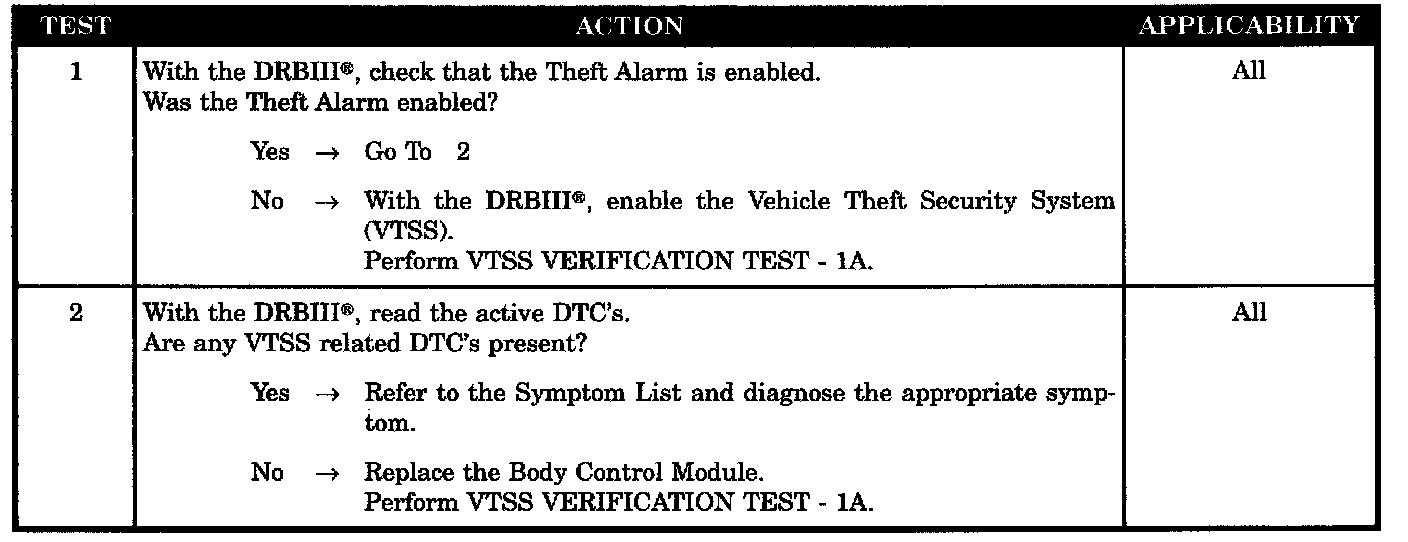 VTSS WILL NOT ARM