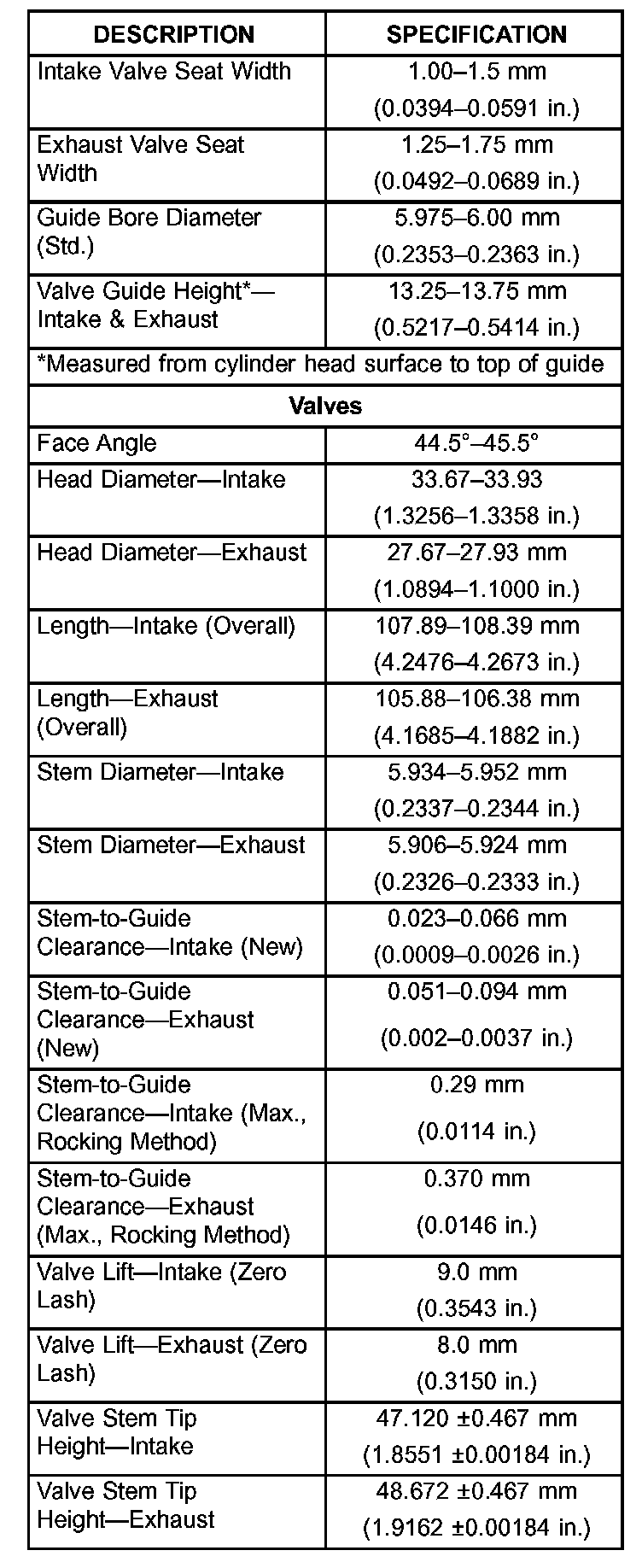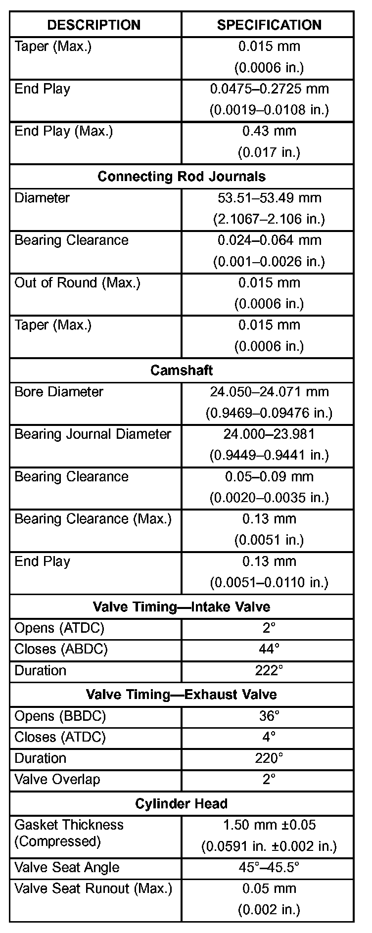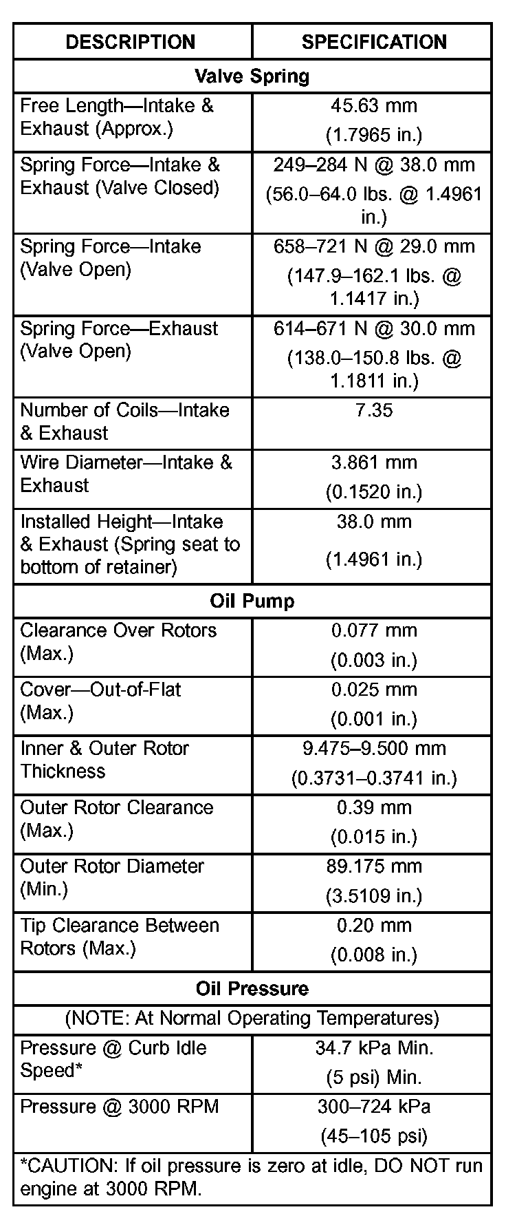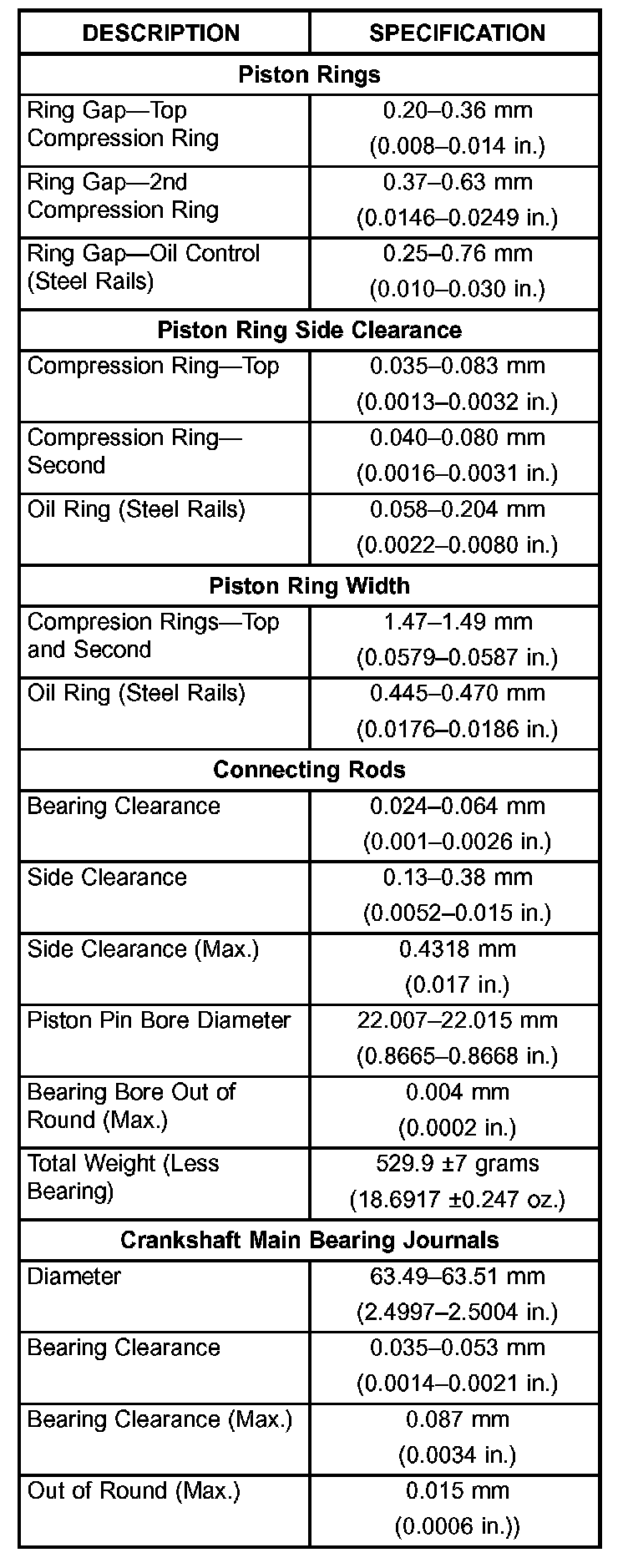Engine Specifications