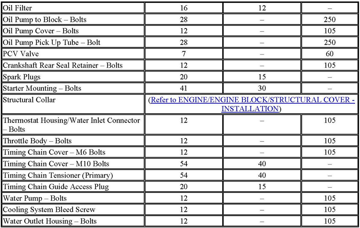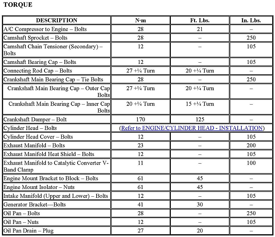 Engine Torque Specifications