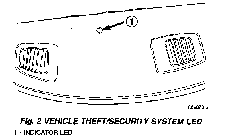 4. Receiver acknowledges programming mode by the flashing Vehicle Theft Security System LED located on the top, center of the instrument panel.