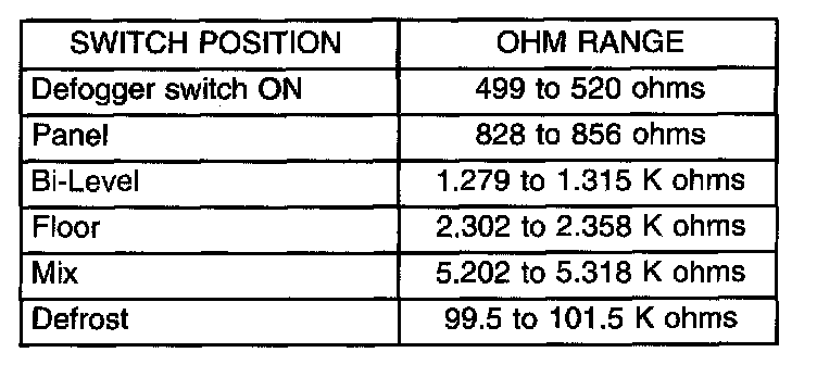 2. Using a ohmmeter, check leads between Pins 5 and 8 of the 8-Way connector. Turn the control module to each position shown on the Control Module Test Chart below CONTROL MODULE TEST CHART . The resistance reading should be within the specifications shown. If not OK, replace the control module. If OK, check:
