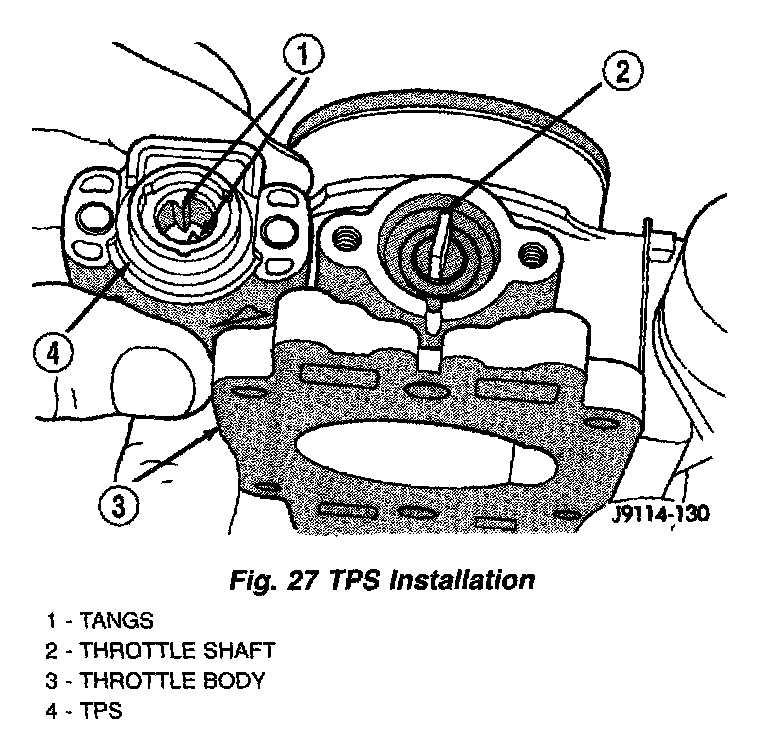 The throttle shaft end of the throttle body slides into a socket in the TPS. When indexed correctly, the TPS can rotate a few degrees to line up the mounting screw holes with the screw holes in the throttle body. If the sensor will not rotate into place, install the sensor with the throttle shaft on the other side of the socket tangs. The TPS has slight tension when rotated to align the mounting holes.