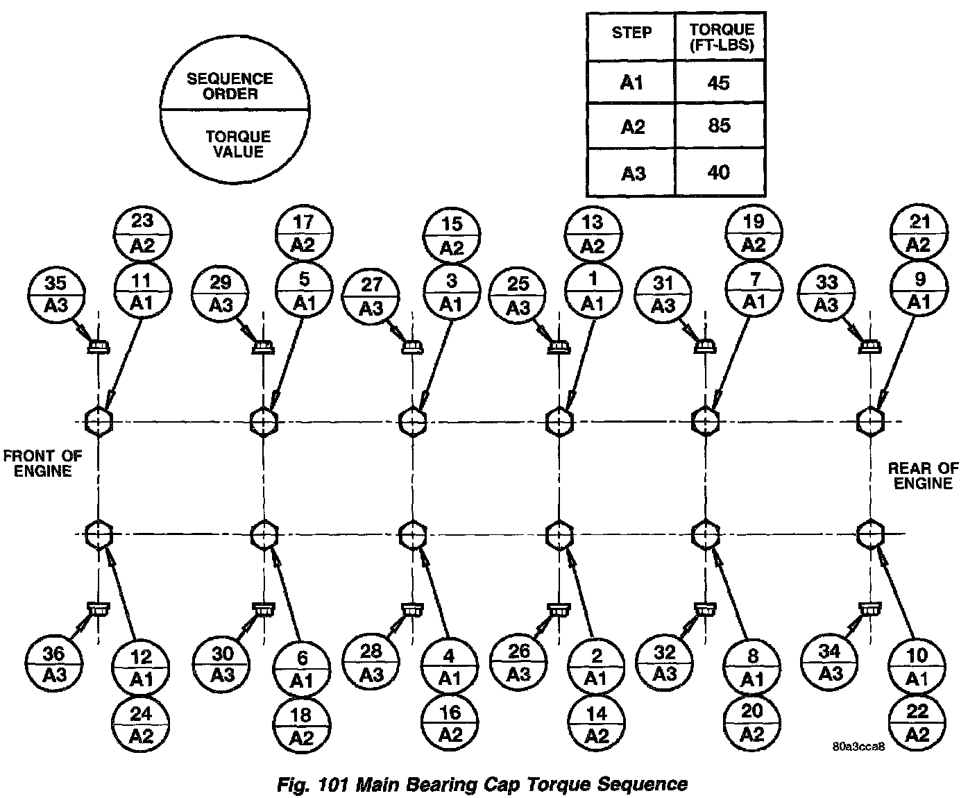 3. Tighten the A1 bolts to 61 Nm (45 ft. lbs.) in the sequence order shown.