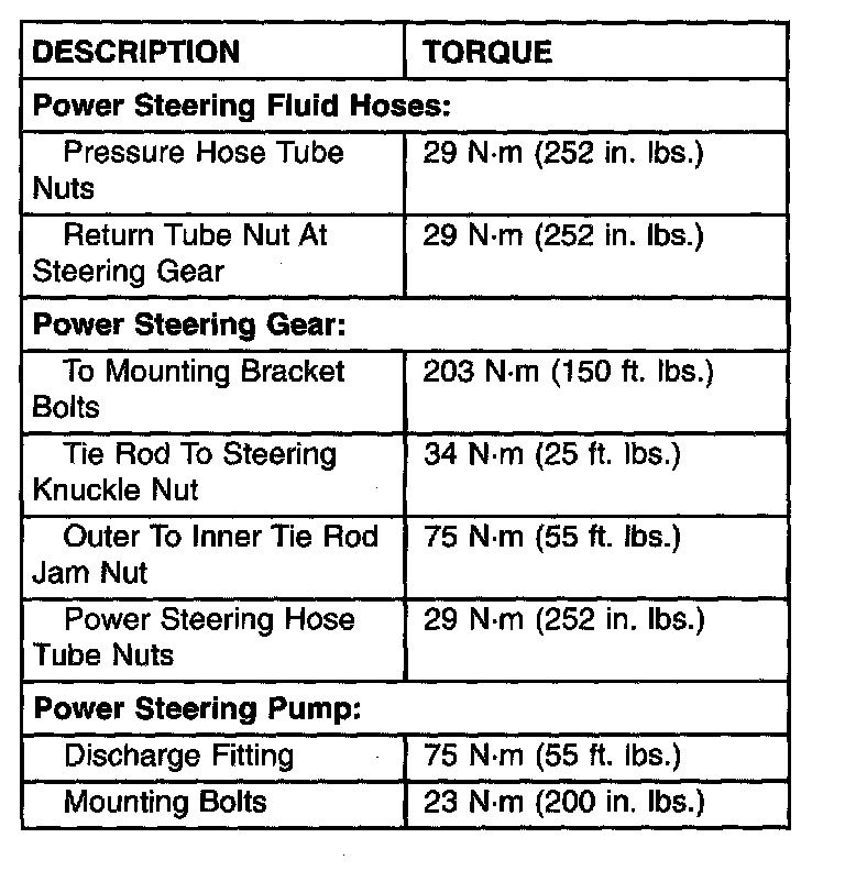Power Steering System Tightening Specifications